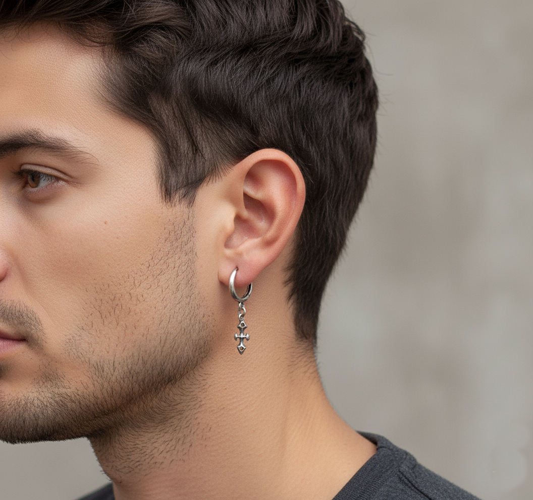Cross Charm Huggie Hoop Earrings 925 Sterling Silver, Handmade Unisex Earrings