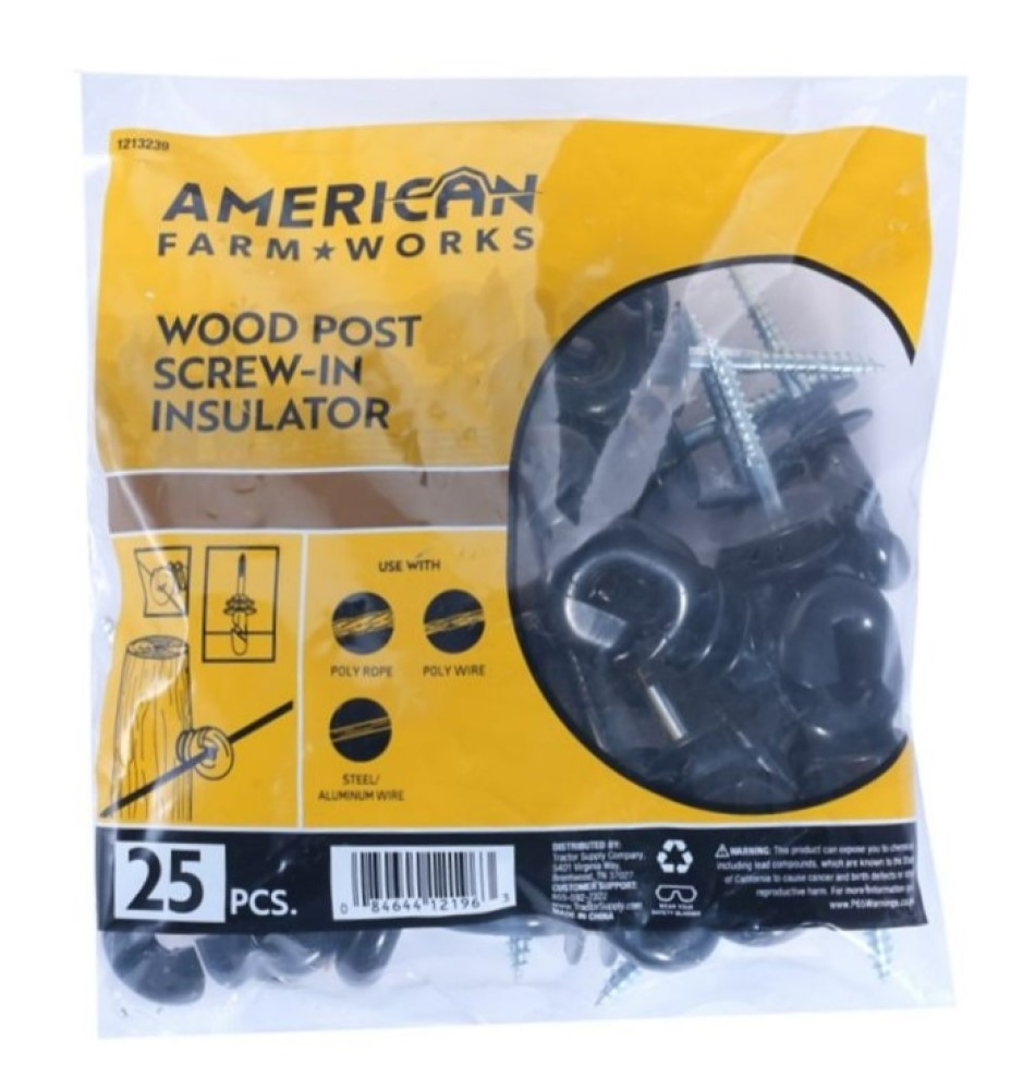 This sale transaction is for a American FarmWorks IWSIRB-AFW Wood Post Screw-In Ring Electric Fence Insulators Black 25-Pack, included exactly what is pictured.