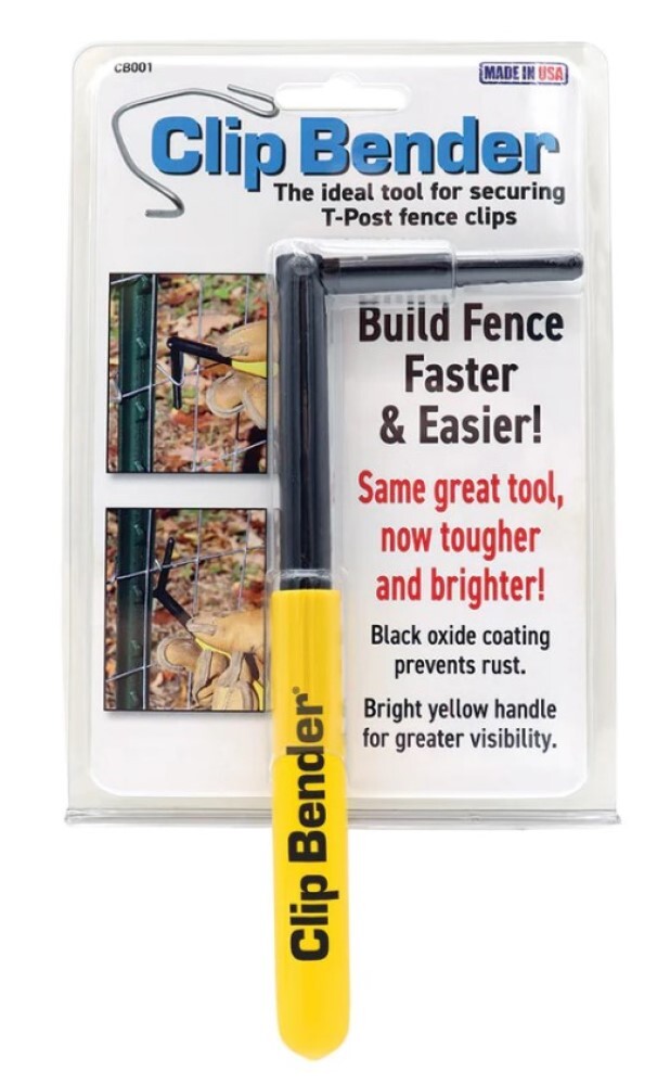 100% steel for maximum durability Patented design delivers the best tool for the job NEW: Black oxide fencing tool coating prevents rust NEW: Bright yellow handle for greater visibility and grip Backed by a 1 year warranty Ideal for securing T-post fence clips Made in the U.S.A. Works with clips up to 12 gauge Works on barbed wire, woven wire, hog wire, stock panels and horse panels