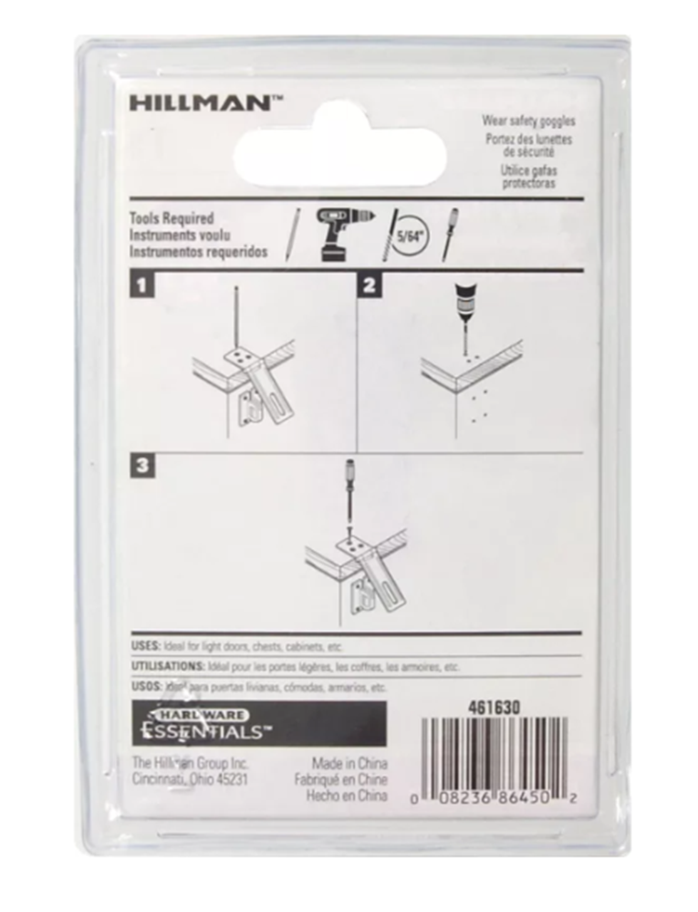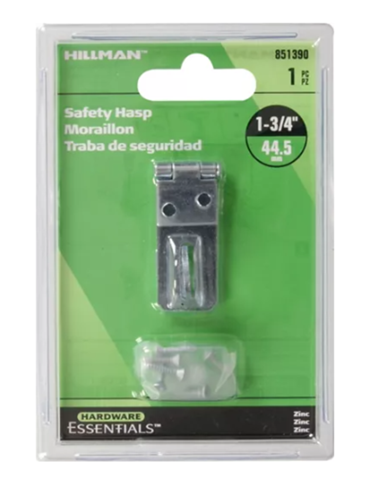 The Hillman Safety Hasp has a fixed non-swivel staple and measures 1-3/4 in. The hasp is padlockable for securing many types of doors, trunks, cabinets, and gates. The package comes with all necessary mounting hardware and installation instructions.