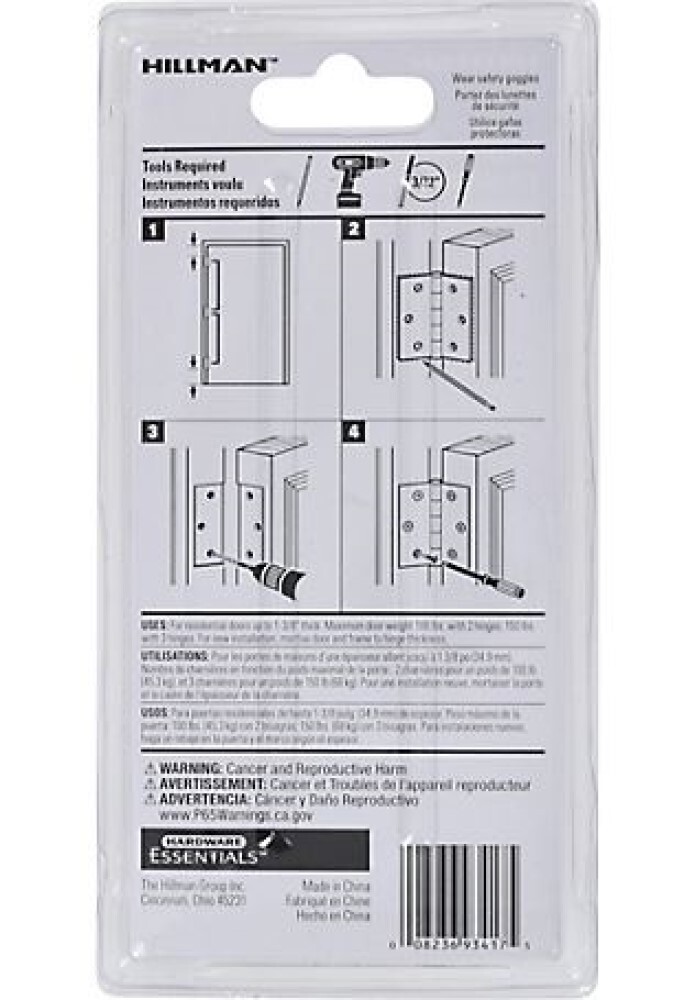 Hillman Hardware Essentials 852602 Square Corner Door Hinge 3-Inch Black