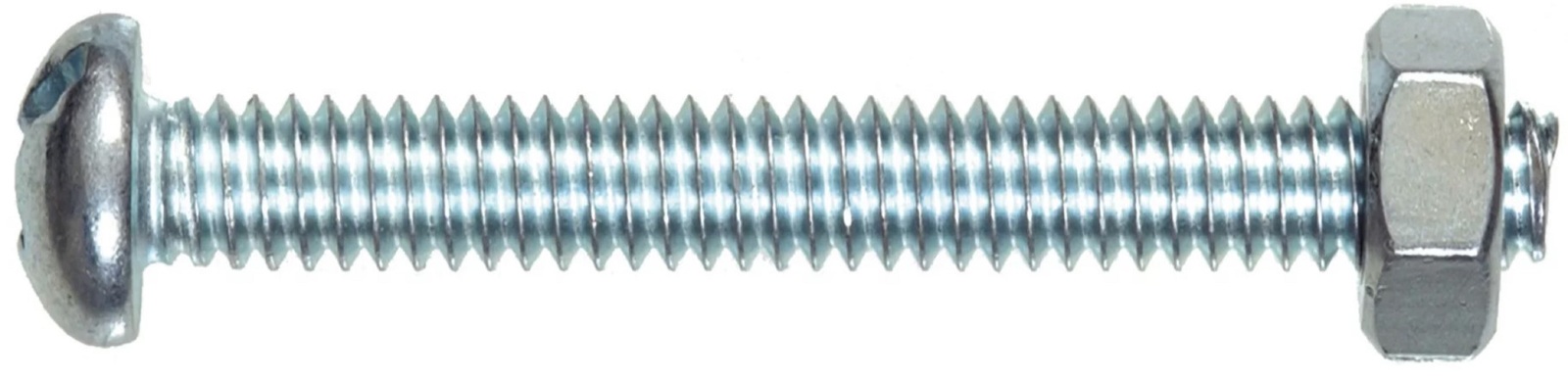 IDEAL FOR METAL FASTENING: Stove bolts are engineered for metal-on-metal fastening applications INSTALLS EASILY: Fasten with screwdriver to reduce risk of over-tightening PRE-DRILLING RECOMMENDED: For installation, drill a hole in the material that matches the diameter of the bolt PART OF A COMPLETE FASTENING SOLUTION: Each bolt includes a hex nut to make a complete fastener CORROSION-RESISTANT FINISH: Zinc plating offers moderate protection against rust and corrosion 0 0 8 stainless steel machine screws per pack
