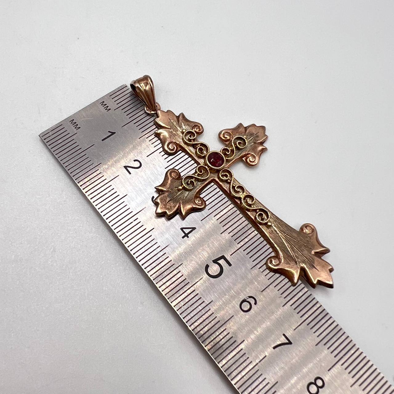 Vintage Gilt Silver 835 Christian Jewelry Pendant Cross Garnet Marked 5.5gr