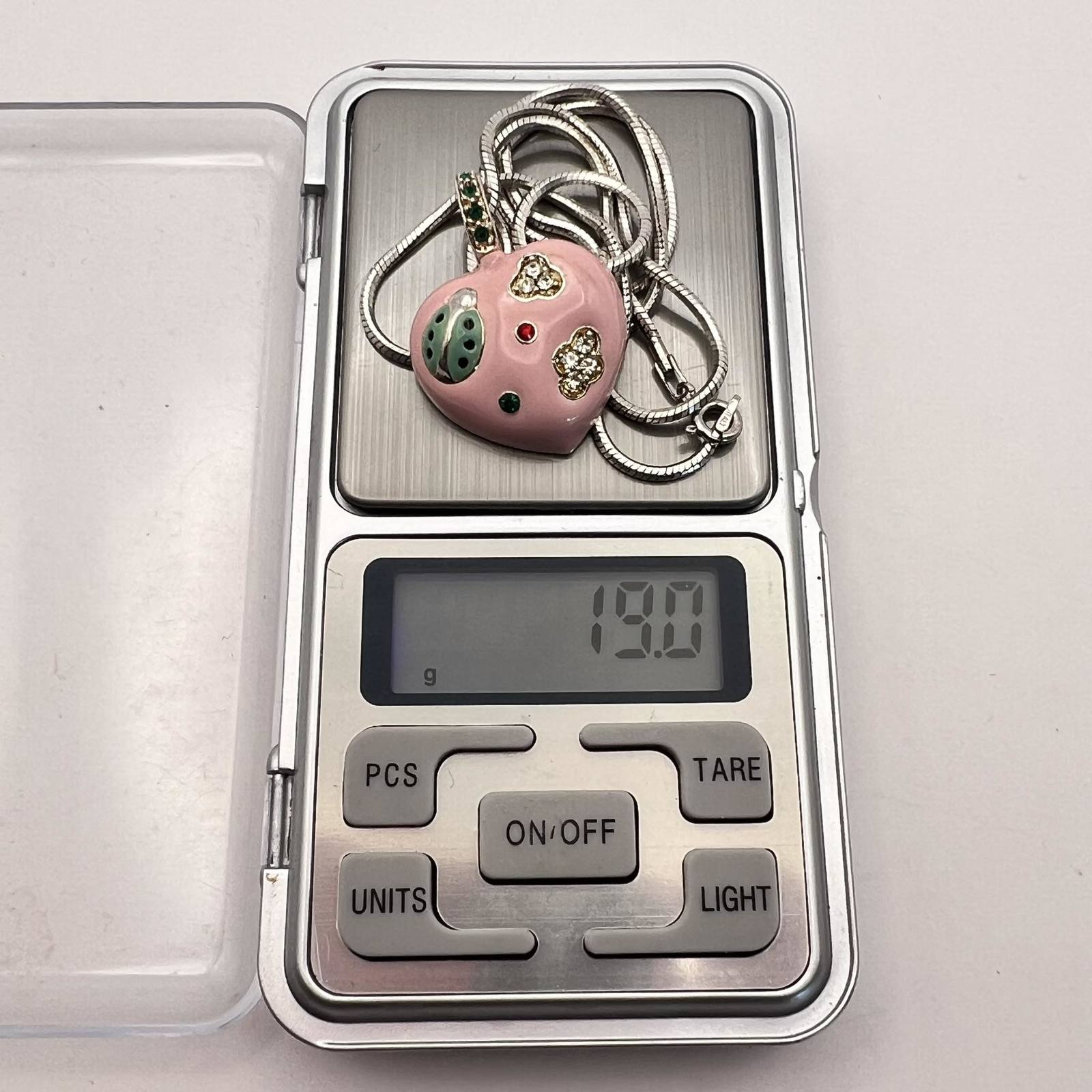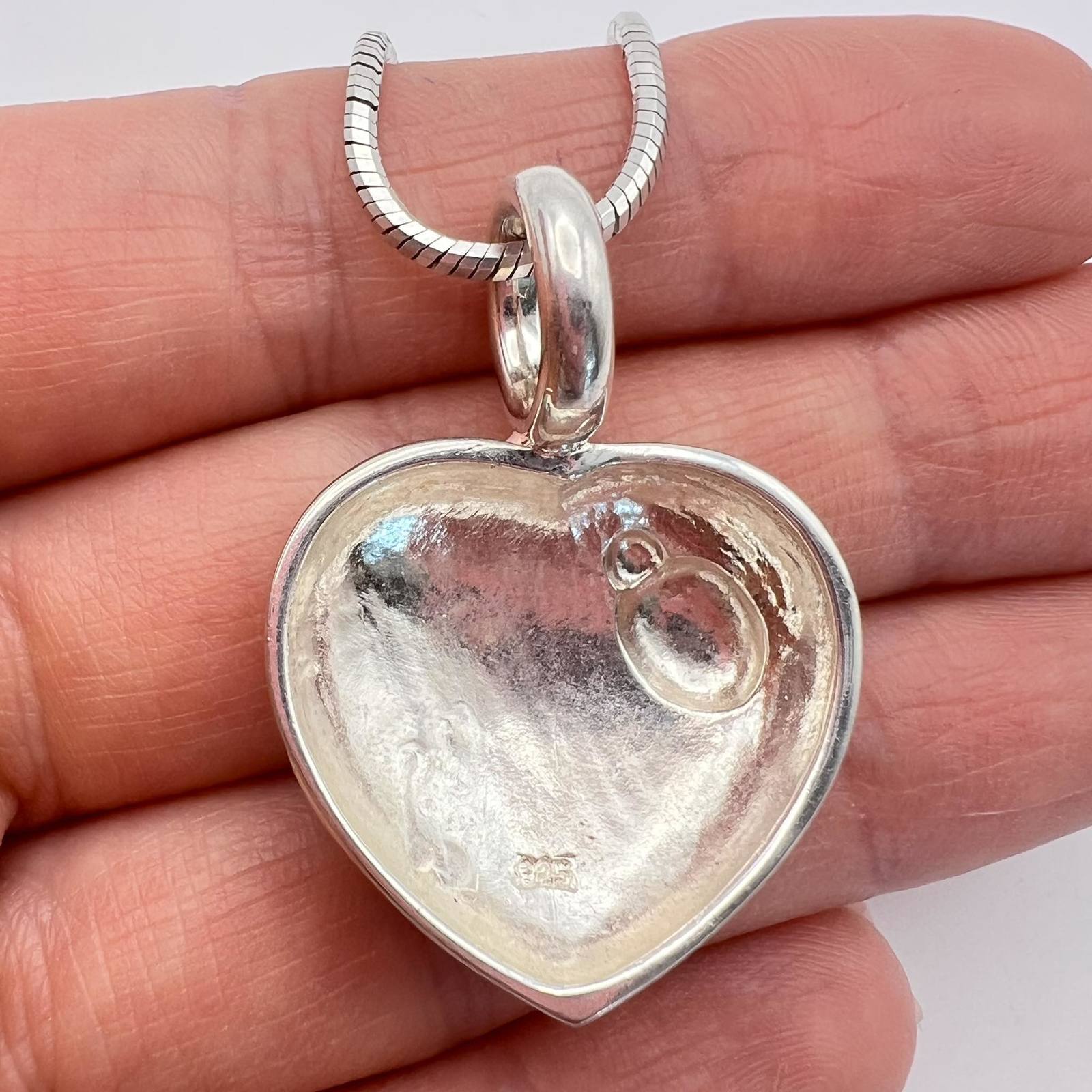 Unusual Vintage Sterling Silver 925 Jewelry Chain Necklace Pendant Heart Enamel Signed