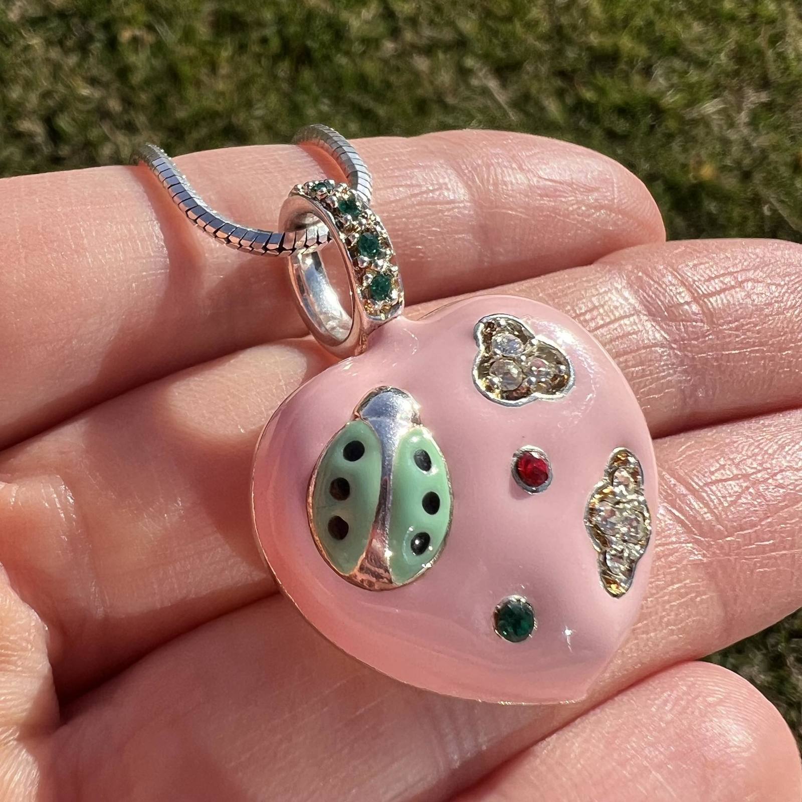 Vintage Sterling Silver 925 Jewelry Chain Necklace Pendant Heart Enamel Italy