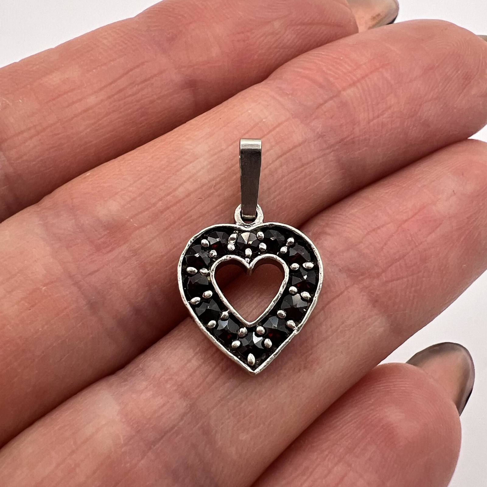 Fine Vintage Sterling Silver 925 Women's Jewelry Pendant Heart Bohemian Garnets