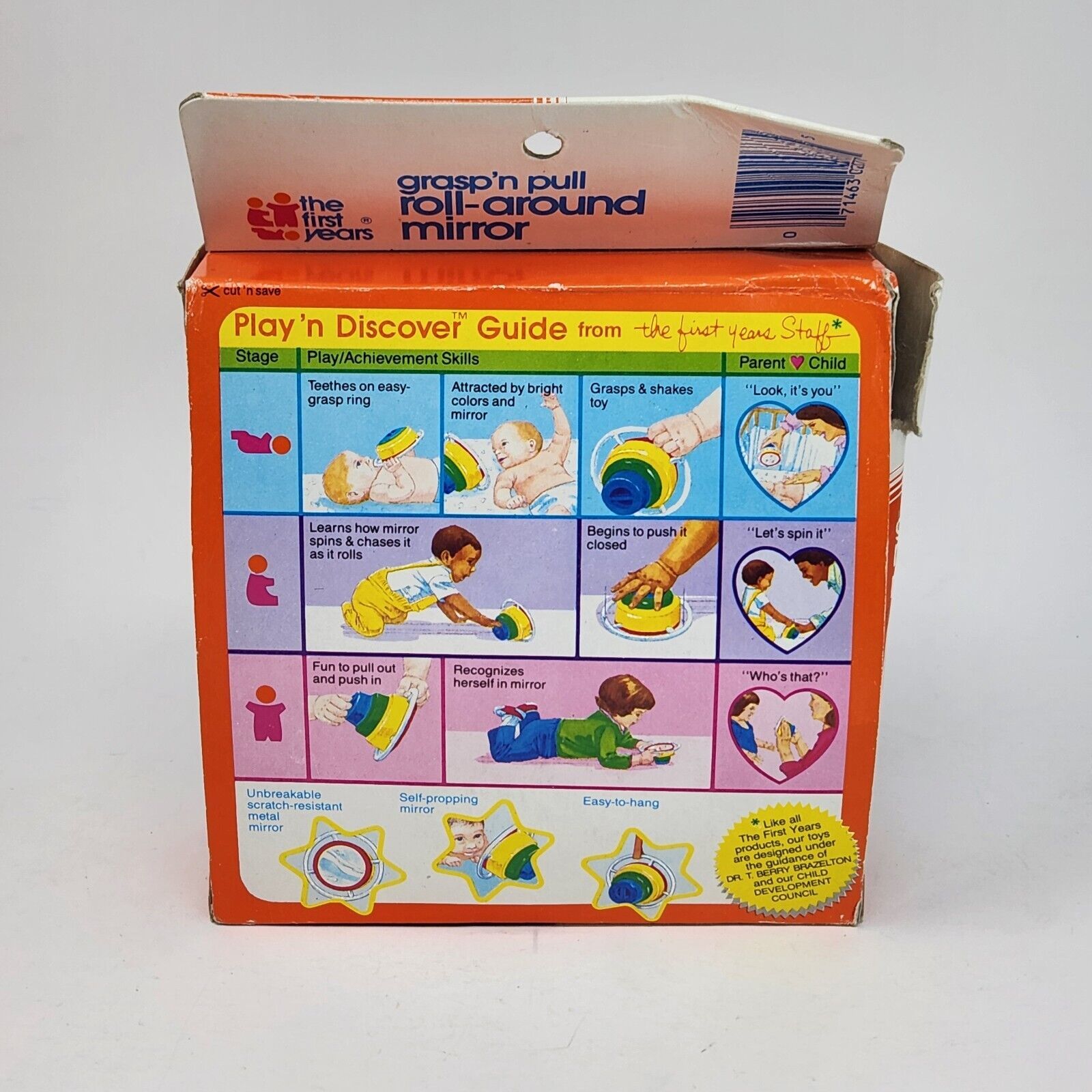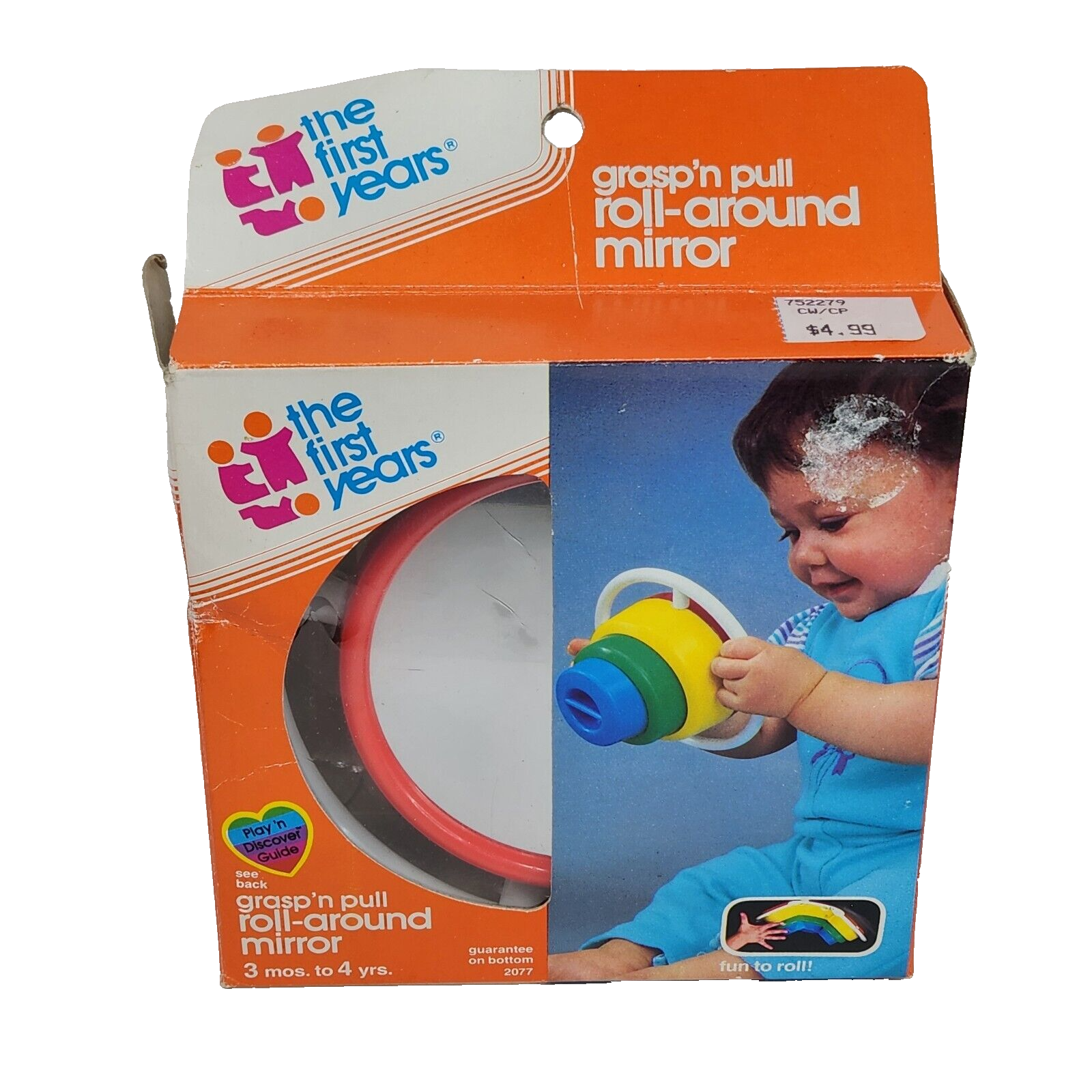 VINTAGE 1988 THE FIRST YEARS GRASP 'N PULL ROLL AROUND MIRROR COLORFUL