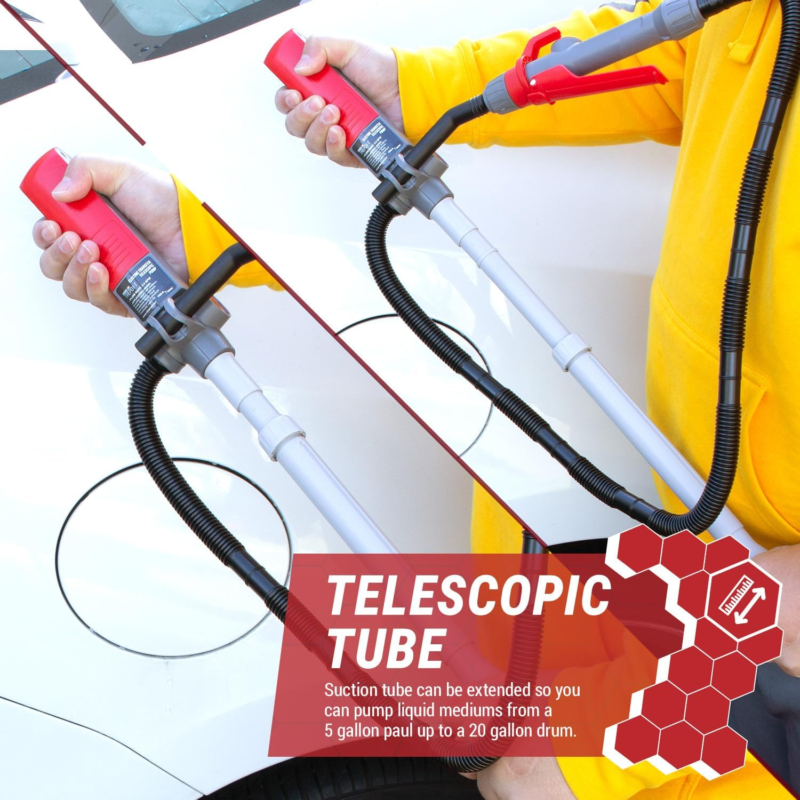 XL SUCTION TUBE - Telescopic Suction tube of 15 inches to 24 inches to reach various containers such as 5 Gallon Pail Buckets, up to 20 Gallon Drums, Gas Can, Utility Jugs and more