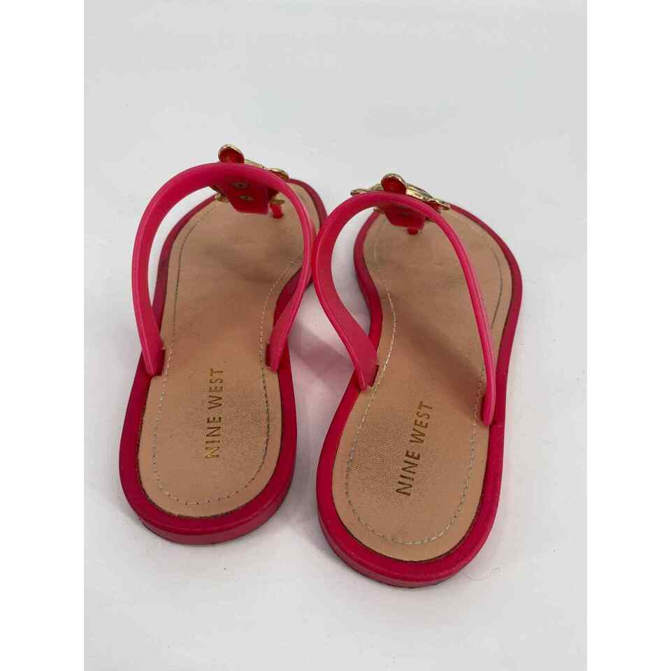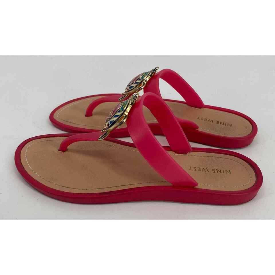 Nine West women 7M Neptune pink turtle jelly flip flop T-strap flats