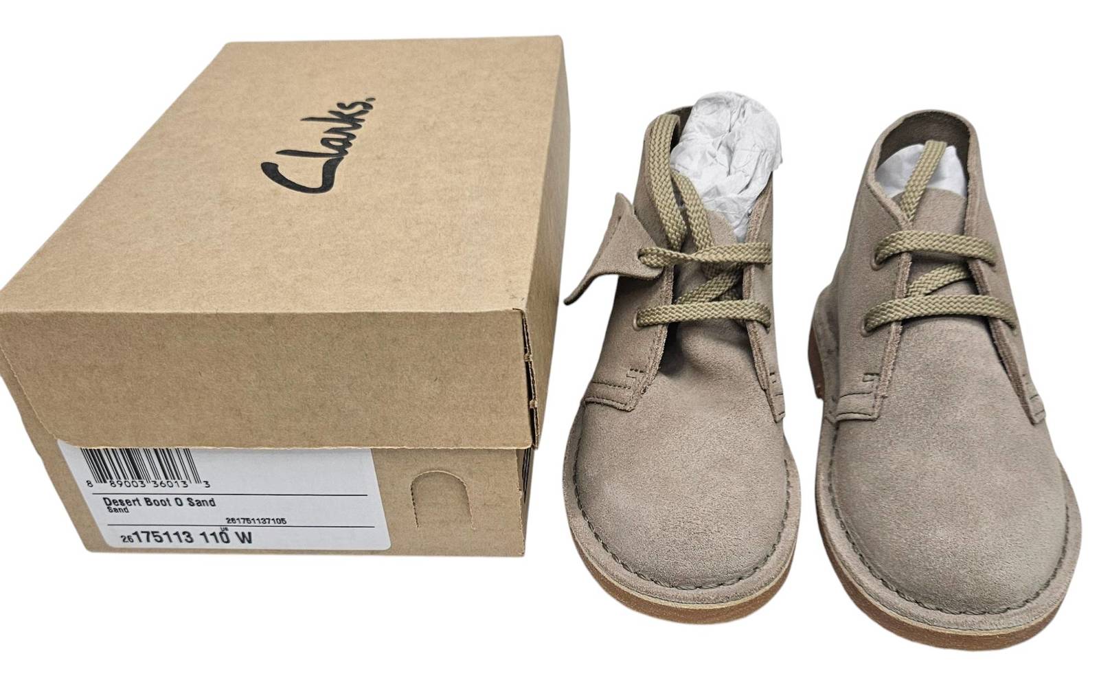 Type: ShoesBrand: ClarksModel name: Desert BootColor: Sand SuedeSize: Kids 10Box included: yesCondition:New (Open Box)