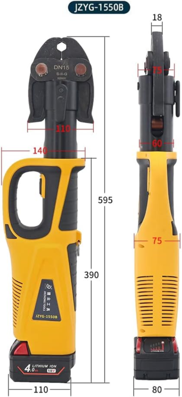 Strong power. The propress tool is equipped with two 4000 mA batteries. The output is 5T. The tube pressing time is 5-8 seconds, and the tube is fully charged for 250 times. The service life is long, and the total pipe pressure is more than 20000 times.