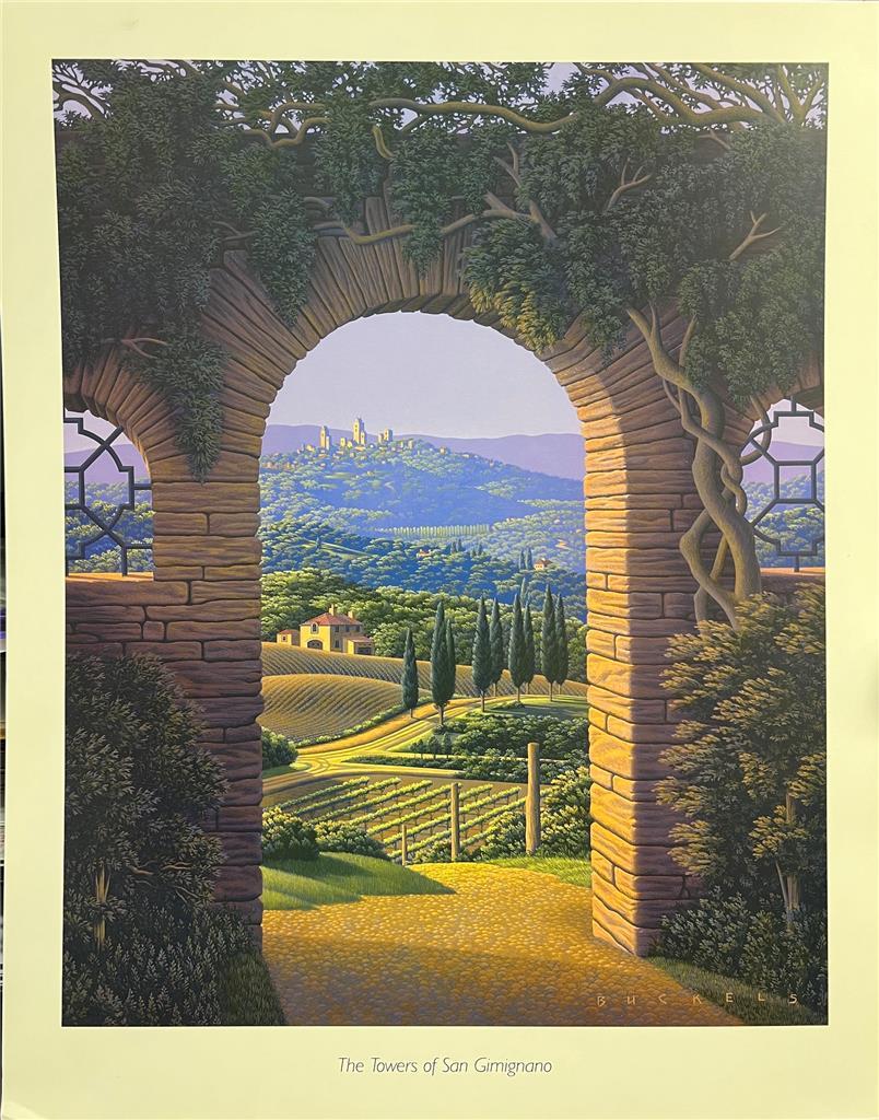 Jim Buckels The Tower if San Gimignano Plated Signed Serigraph On Paper Art
