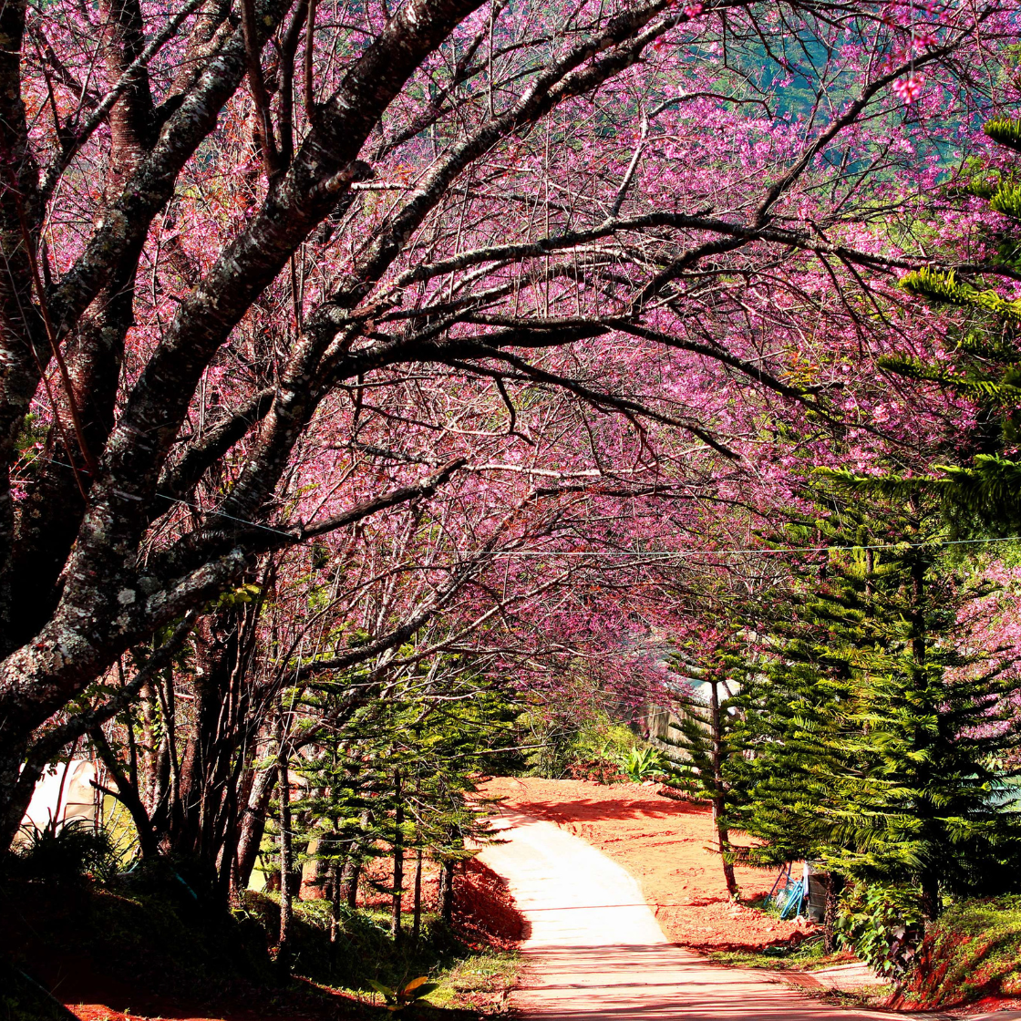 1. Vibrant pinkish-red blooms: Delicate, iconic cherry blossoms