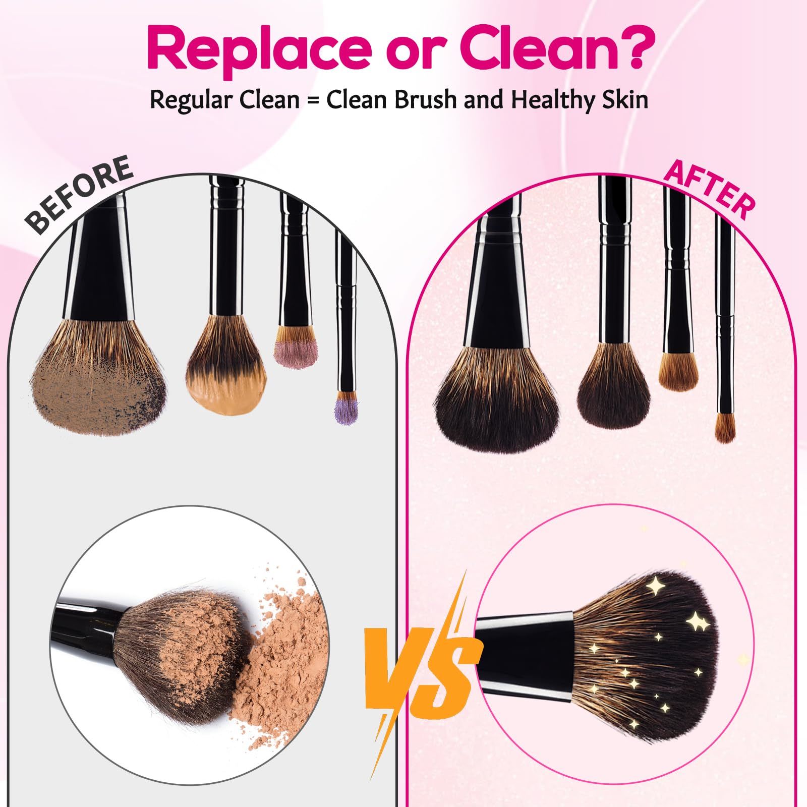 KEEP YOUR HEALTHY SKIN: For those who love to makeup, keeping your makeup brushes clean is a prerequisite for taking care of your skin's health. Cleaning your makeup brushes every two weeks will keep them clean, prolong their life, and prevent residue from building up on them and causing various skin problems. Keep your skin healthy and enjoy your makeup.