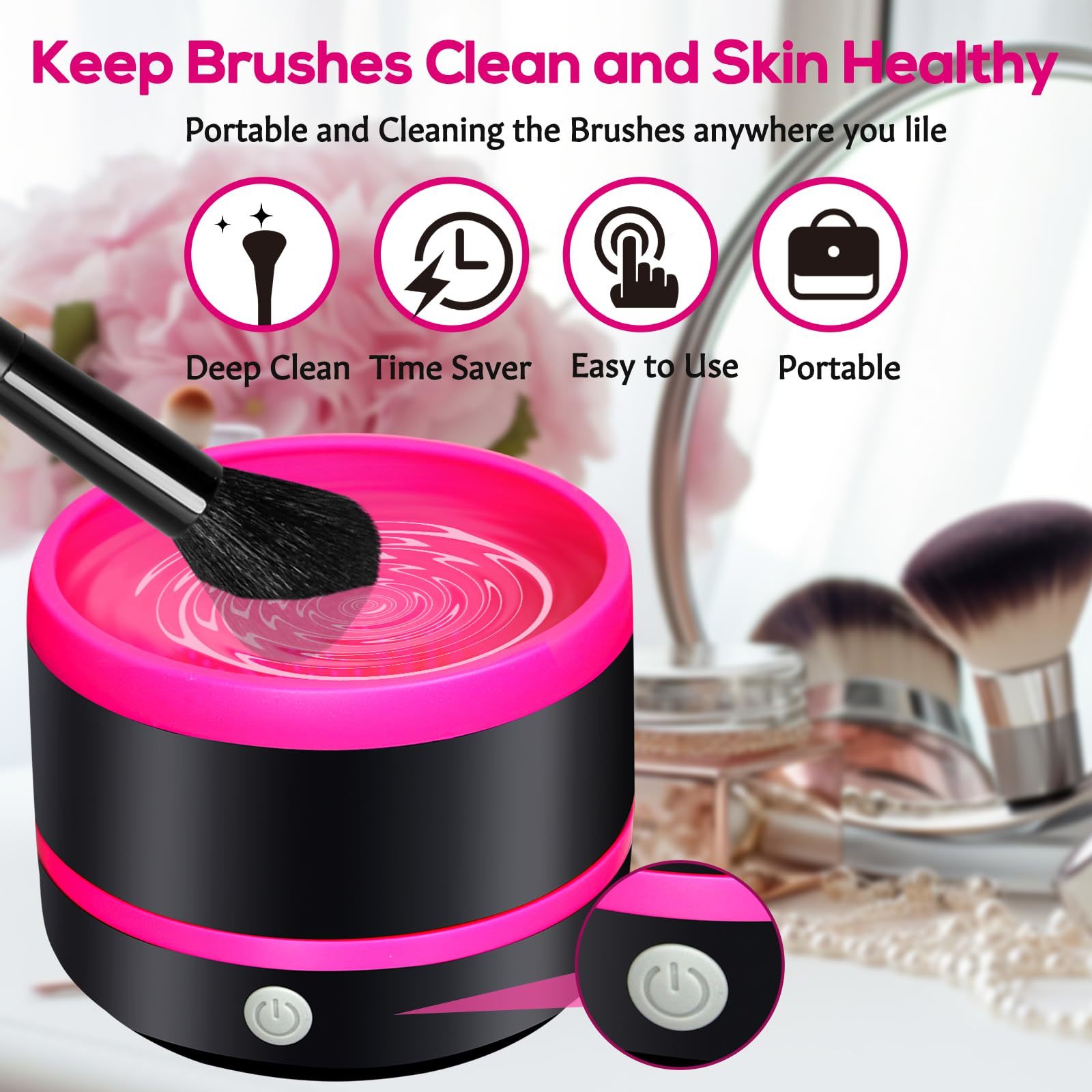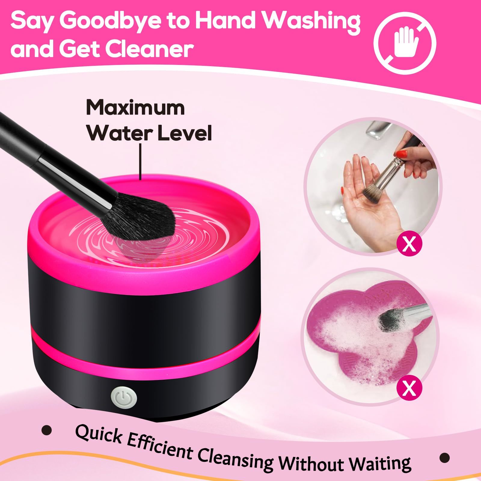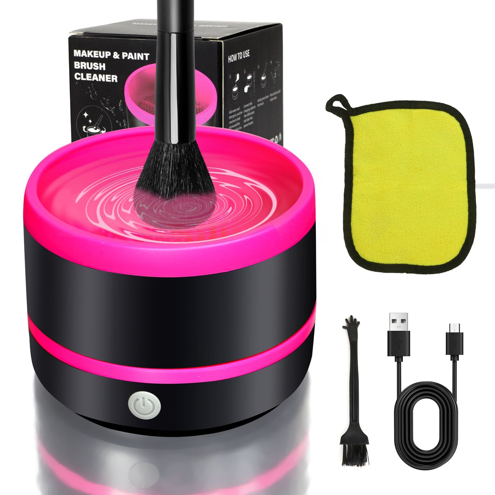 GENTLE FOR BRUSH FIBERS: Simple and straightforward to operate, the cleaner requires only the addition of water and cleaning solution, followed by placing the brush inside and pressing a button to start the cleaning process to effectively clean the residue and dirt inside the makeup brush, without damaging the shape and softness of the makeup brush, keeping the cosmetic brush clean for better makeup effects.