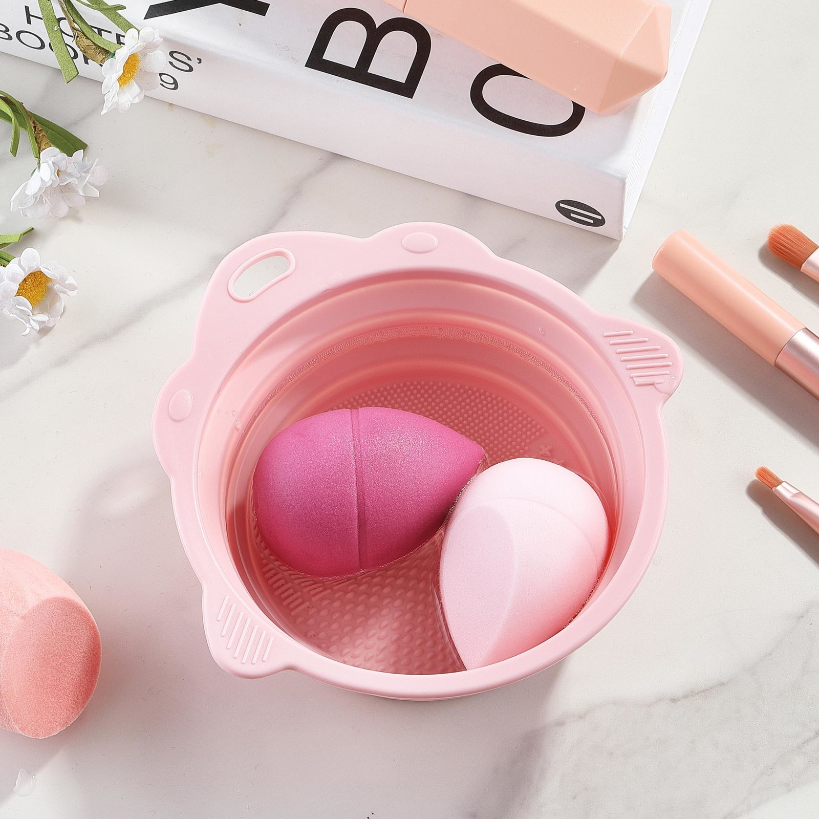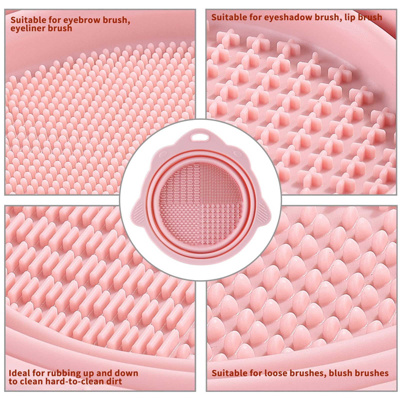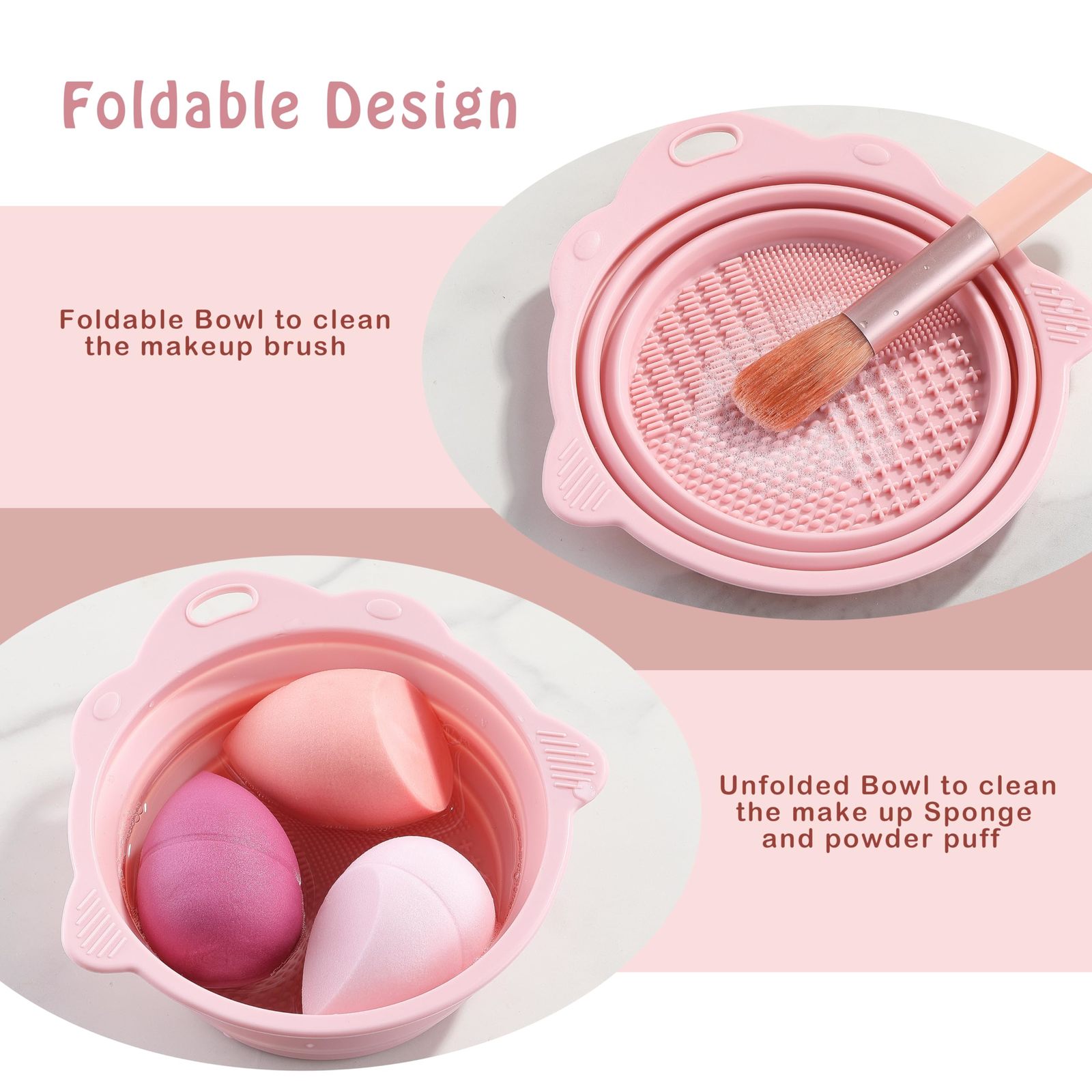 Makeup Brush Cleaner Bowl, 2 Pieces Foldable Silicone Makeup Cleaning Tools for