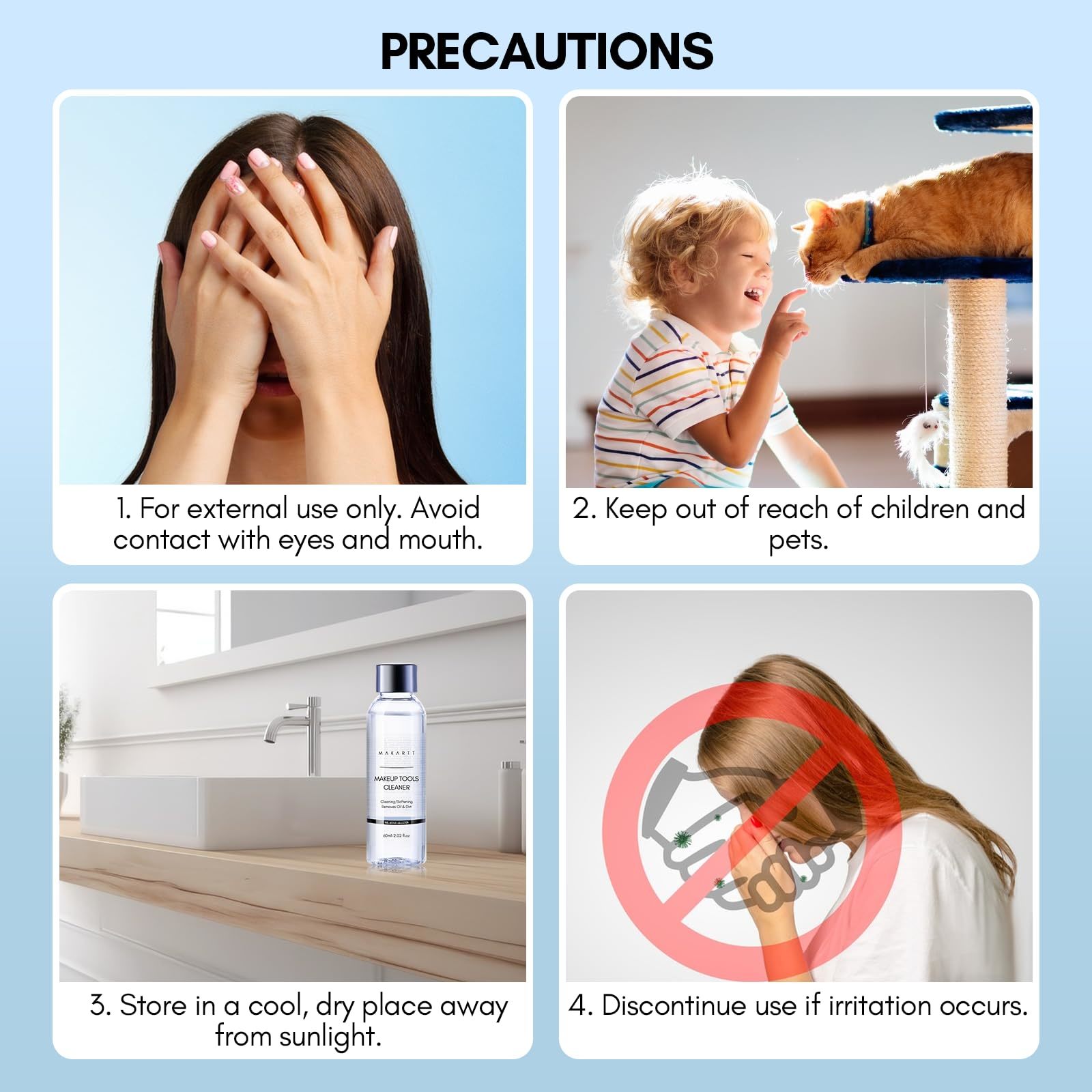 [Easy to Use]Makartt make up cleaner for brushes and sponges is very simple to use.Simply soak the makeup brush in cleaning solution and gently rub it with a gentle gesture.The steps for using Makarrt makeup brush clean are simple and convenient,which can increase the lifespan of your beauty tools.Makartt makeup tools cleaner is colorless and tasteless,you will fall in love with it.