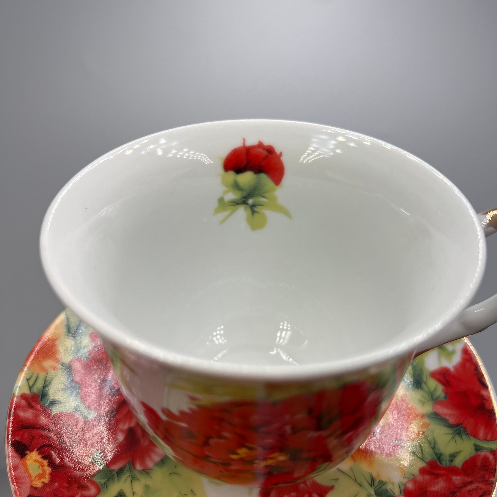 Vintage Set Cup Saucer Tea Hot Porcelain Stamp Beautiful Rose Collectibles