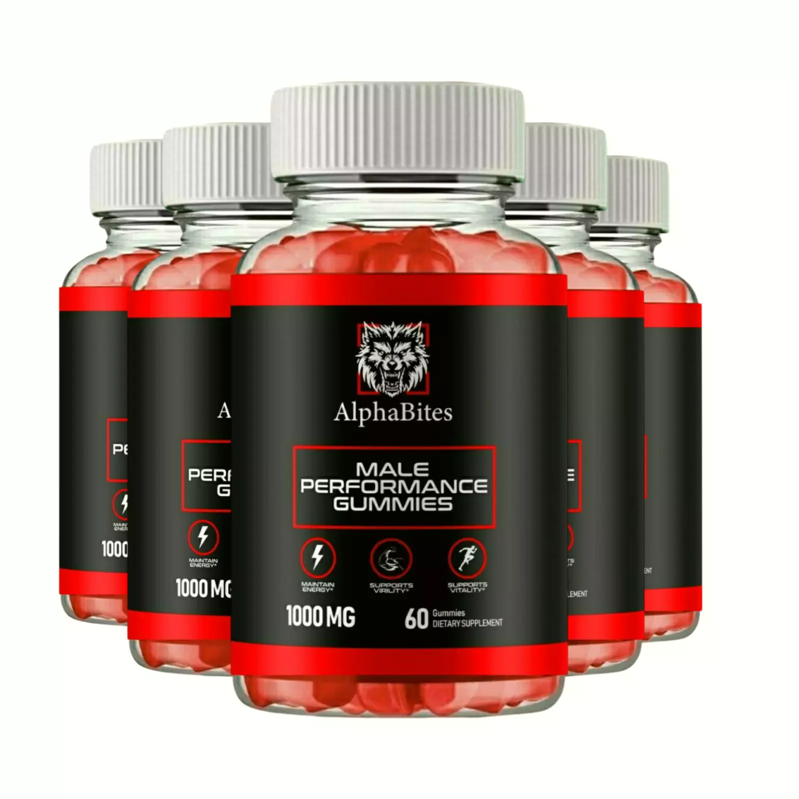 5-Pack AlphaBites Male Gummies - Alpha Bites Natural Support For Men-300 Gummies
