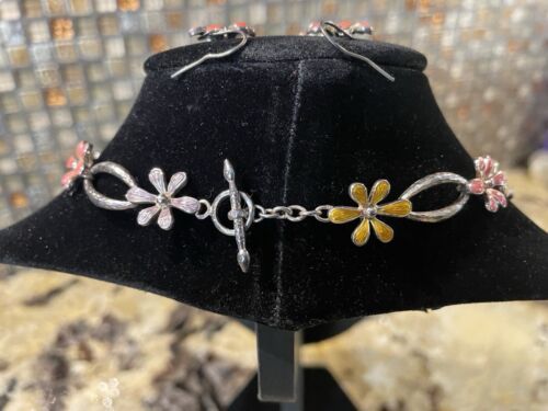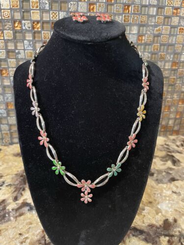 Cathy Waterman True Heart Sterling Silver Enamel Flower Necklace & Earrings Set