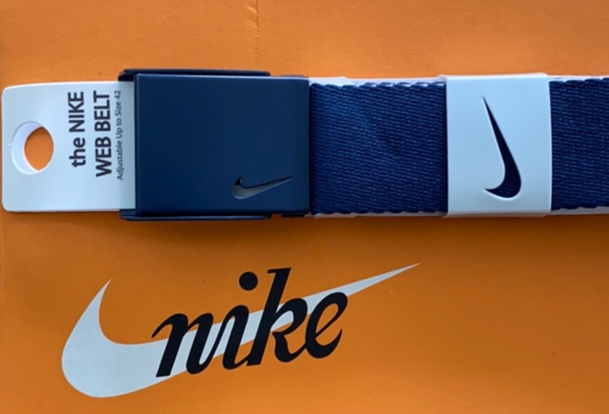 NEW Nike Tech Essentials Single Web Golf Belt Reversible Blue/White Bottle Opener