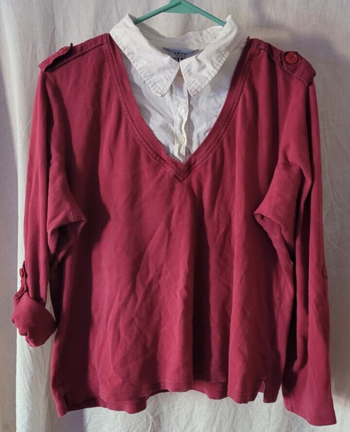 Women's Izod Pullover Long Sleeve Shirt 1X Deep Red Casual 100% Cotton Nice
