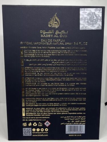 LATTAFA Bade'e Al Oud Oud For Glory Eau De Parfum 3.4 oz 100 ml Unisex Spray.