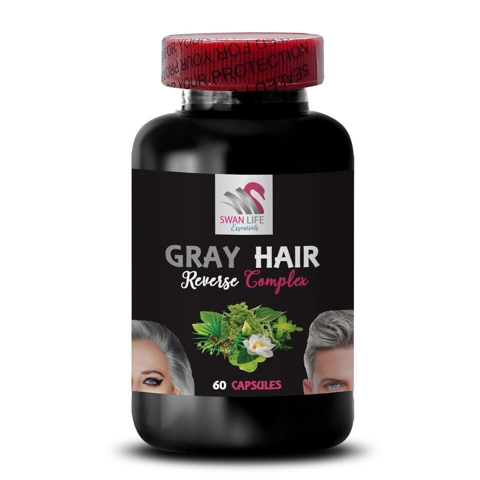 GRAY HAIR REVERSE WITH BIOTIN: Experience a rejuvenation of natural hair color with GRAY-HAIR-REVERSE with Biotin. This supplement is designed to combat the appearance of gray hair. It is a potent blend of vitamins and minerals. Biotin, renowned for its role in promoting hair strength and growth.