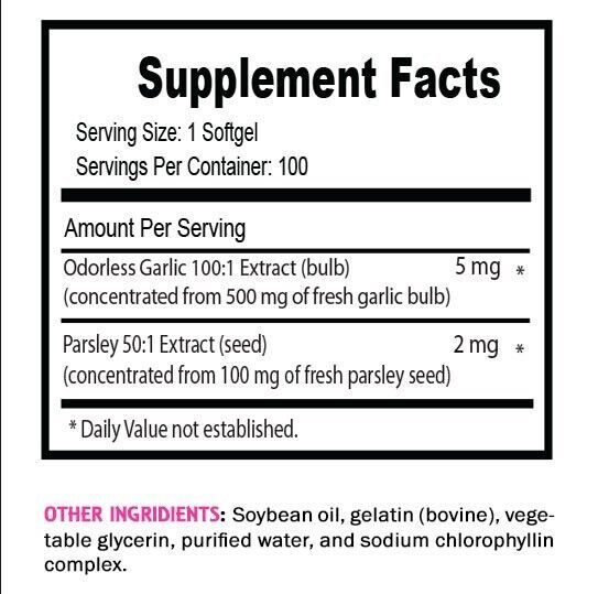 GARLIC PARSLEY ODORLESS ANTIOXIDANT SUPPORT: Garlic Parsley Odorless also serve as an ideal option for antioxidant support. Garlic is known for its high levels of naturally occurring compounds that can help combat free radicals. Paired with parsley's naturally refreshing properties, the formula brings an extra layer of antioxidant support.