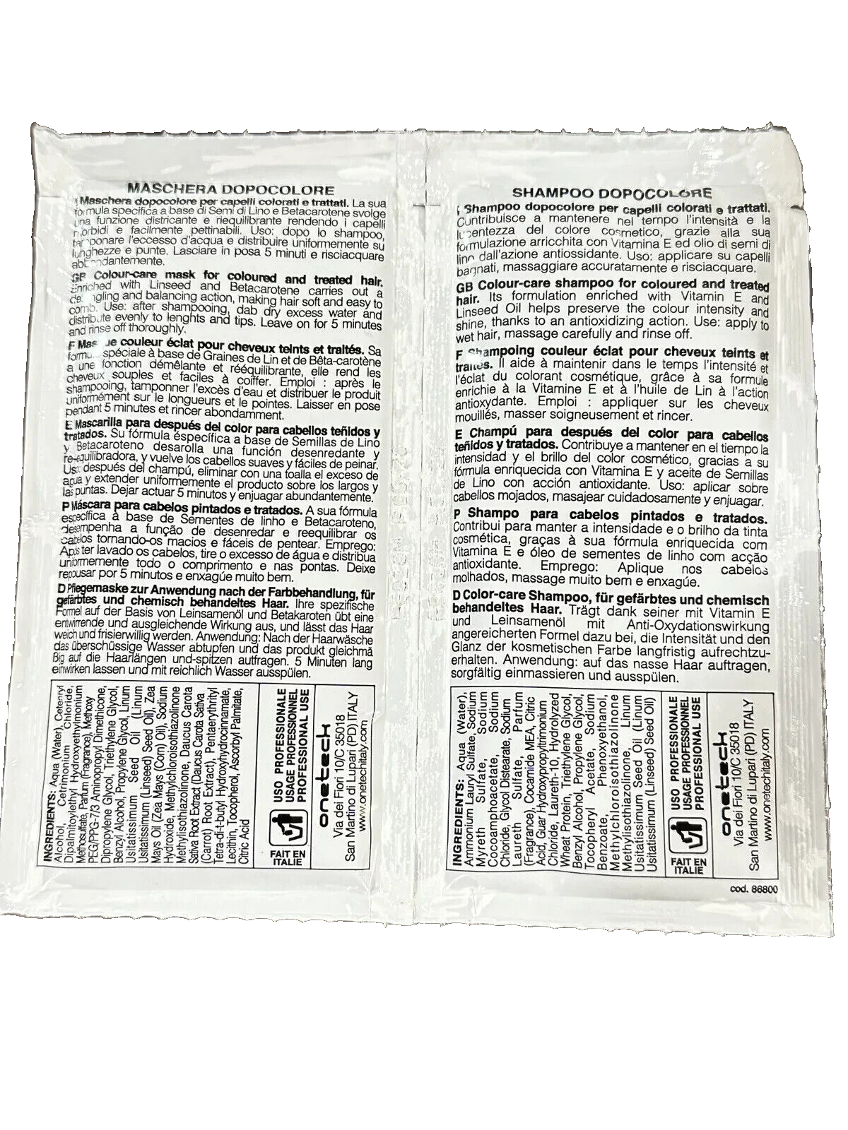 Fanola After Colour pH 5.5 l 6.0 Color Care (4) Shampoo & (4) Mask 0.507 oz each