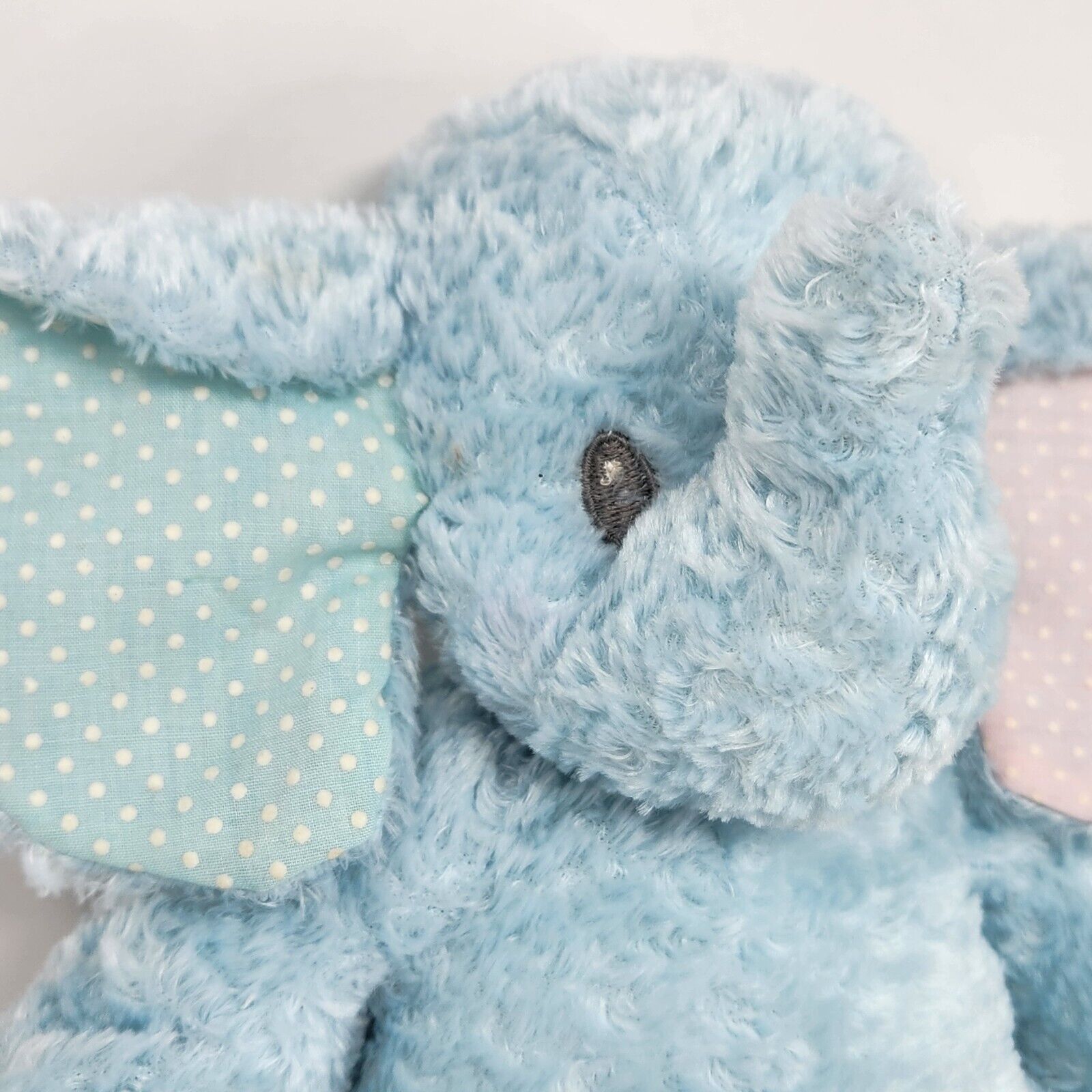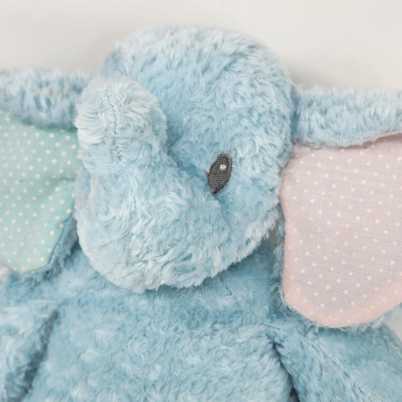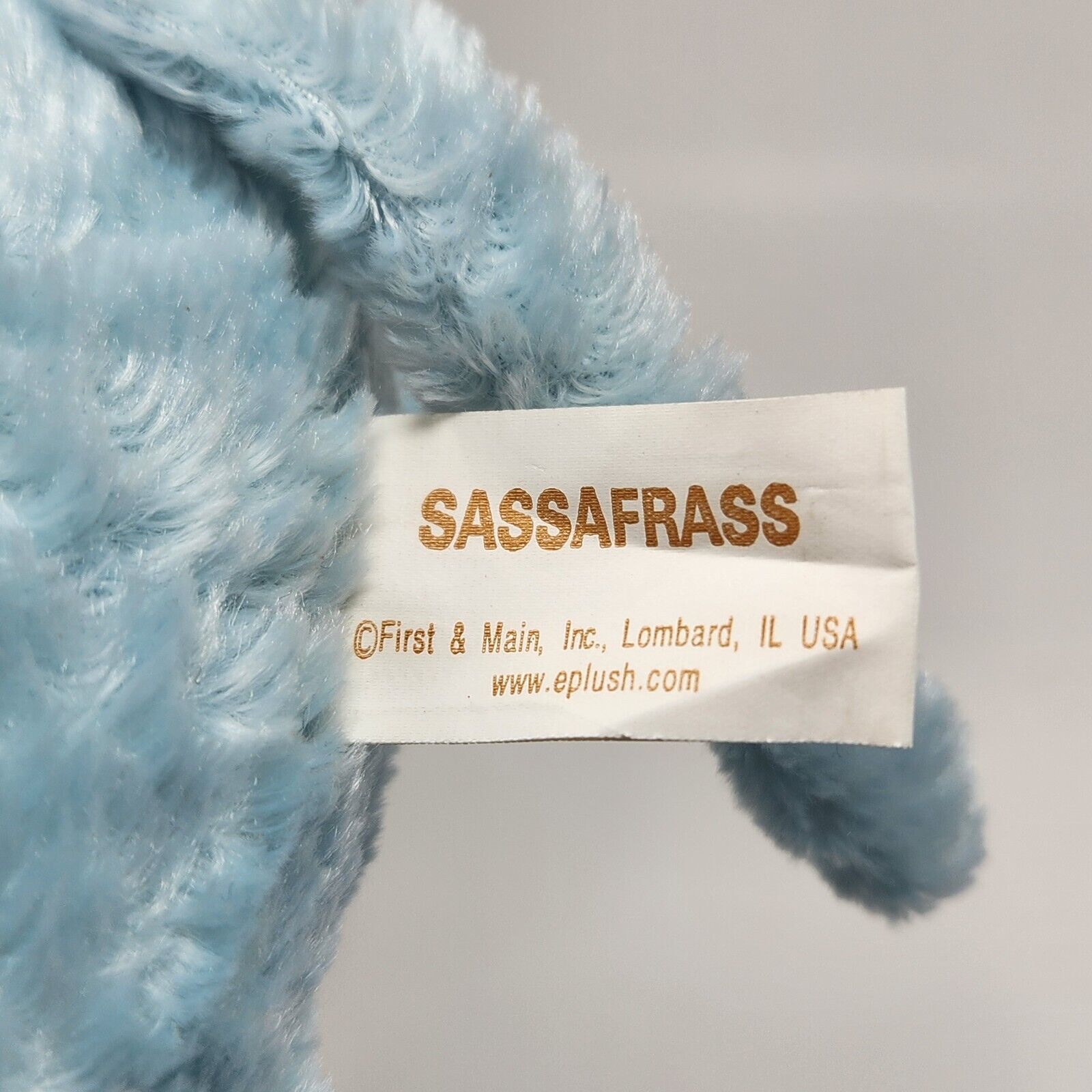 12" VINTAGE FIRST & MAIN SASSAFRASS BLUE ELEPHANT RATTLE STUFFED ANIMAL PLUSH