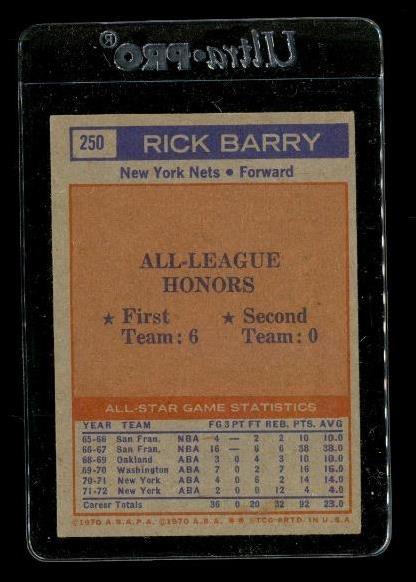 Vintage 1972 Topps #250 Rick Barry Basketball Card New York Nets
