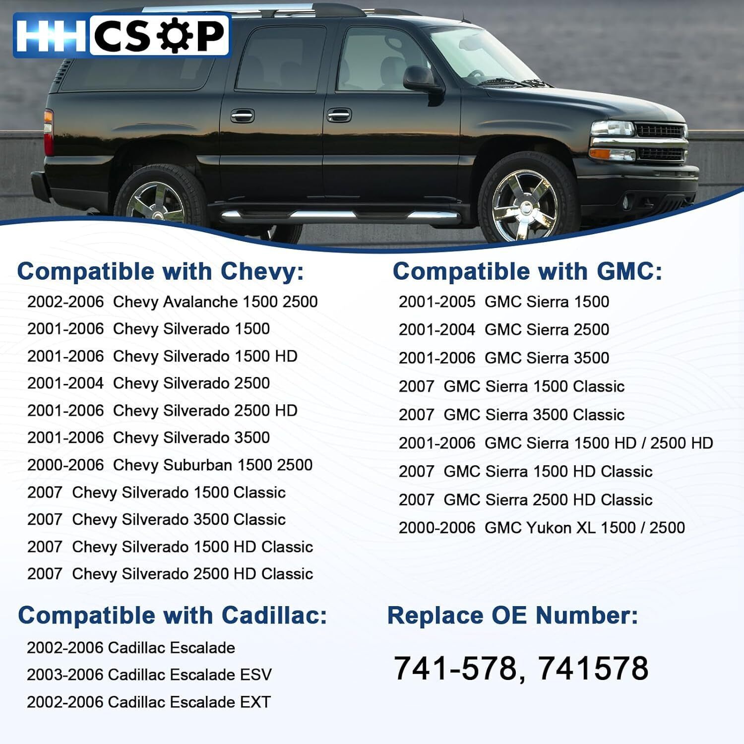 Compatibility: Rear driver power window regulator motor fit for 2000 2001 2002 2003 2004 2005 2006 Chevy Suburban, 2001-2006 Silverado 1500 2500 3500 1500 HD 2500 HD, 2007 Silverado 1500 Classic / 1500 HD Classic / 2500 HD Classic / 3500 Classic, 2002-2006 Avalanche, 2001-2006 GMC Sierra 1500 2500 3500 1500 HD 2500 HD, 2007 Sierra 1500 Classic / 1500 HD Classic / 2500 HD Classic / 3500 Classic, 2000-2006 Yukon XL 1500 2500, 02-06 Cadillac Escalade EXT ESV Replace OE Number: 741-578, 741578, GM1550114, WR841580, 15135970, 1552-1776L Installation Location: Rear Left Driver Side Features: The HHCSOP power window motor assembly is manufactured to OE standard and can directly replace your vehicle, enabling your rear driver side window to move up and down faster and more smoothly What You Get: 1 x Rear Driver Window Regulator (Motor Included). 24-Month-Warranty. If you have any concerns or issues, please reach out to customer service