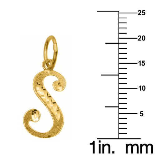 This exquisite initial letter pendant is crafted from 14-karat yellow gold, showcasing a sophisticated cursive design that enhances its charm. The pendant features the letter S which has a stunning diamond-cut finish, adding a touch of sparkle and refinement. Measuring approximately 0.78 inches in length, this pendant is designed to be thin and lightweight, ensuring comfort for everyday wear. The careful craftsmanship is reflected in every detail, making it an appealing accessory for various occasions?whether for casual outings or more formal events.