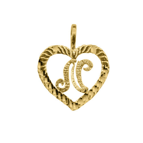 Genuine 14k Yellow Gold 0.59" Diamond-cut Initial Letter N Heart-shaped Pendant