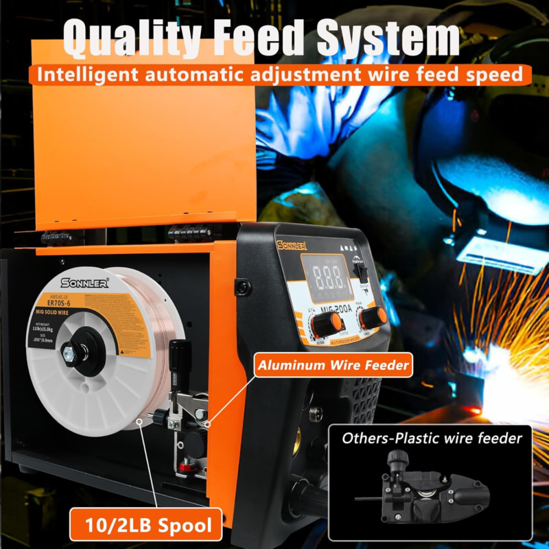 ?Newbie Friendly?: SONNLER MIG 200 welding machine defaults to synergic control. The MIG welder automatically optimizes welding parameters based on wire diameter, material, and gas selection, this is very suitable for novices. If you are very skilled in welding, you can use manual MIG to adjust the current according to your usage habits.