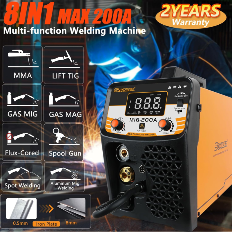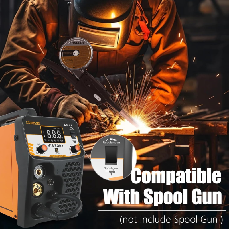 ?POWERFUL 8 IN 1 MULTIPROCESS WELDER?: The SONNLER Welding Machine offers 8 processes: Gas MIG, GAS MAG, Flux Core MIG, MMA/Stick, LIFT TIG, Spot Welding, Aluminum MIG welding, Spool Gun connector optional. (NOTICE: Tig Torch And Spool Gun Not Included).