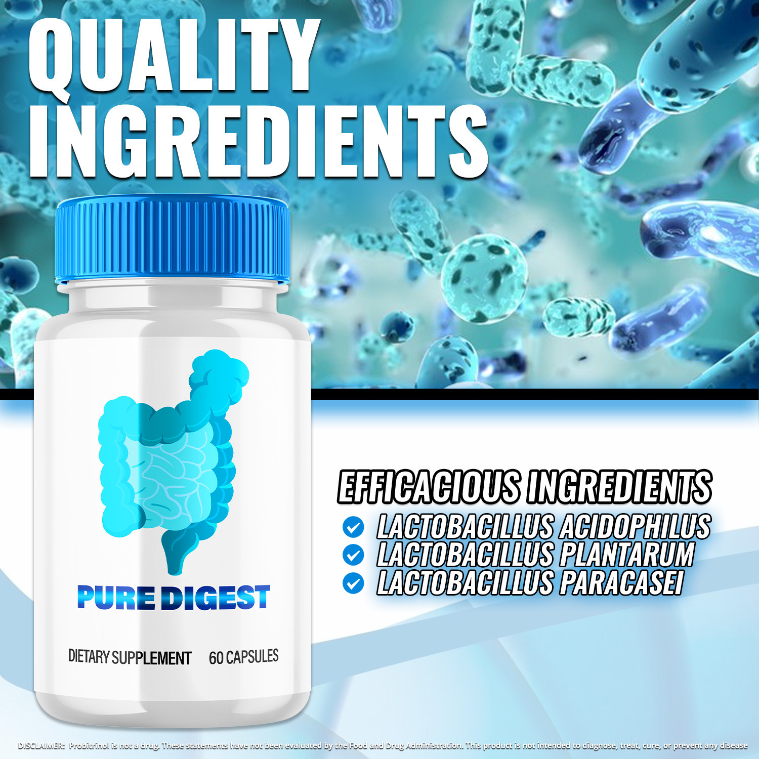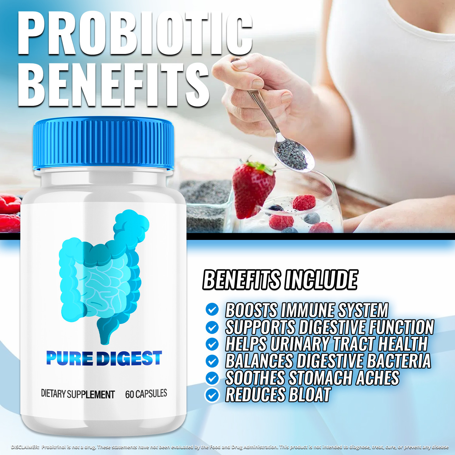 Introducing Pure Digest Probiotic Gut Health Formula, a premium quality supplement designed to promote a healthy gut and improved digestive function.