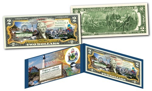 MAINE $2 Statehood ME State Two-Dollar U.S. Bill *Genuine Legal Tender* w/Folio
