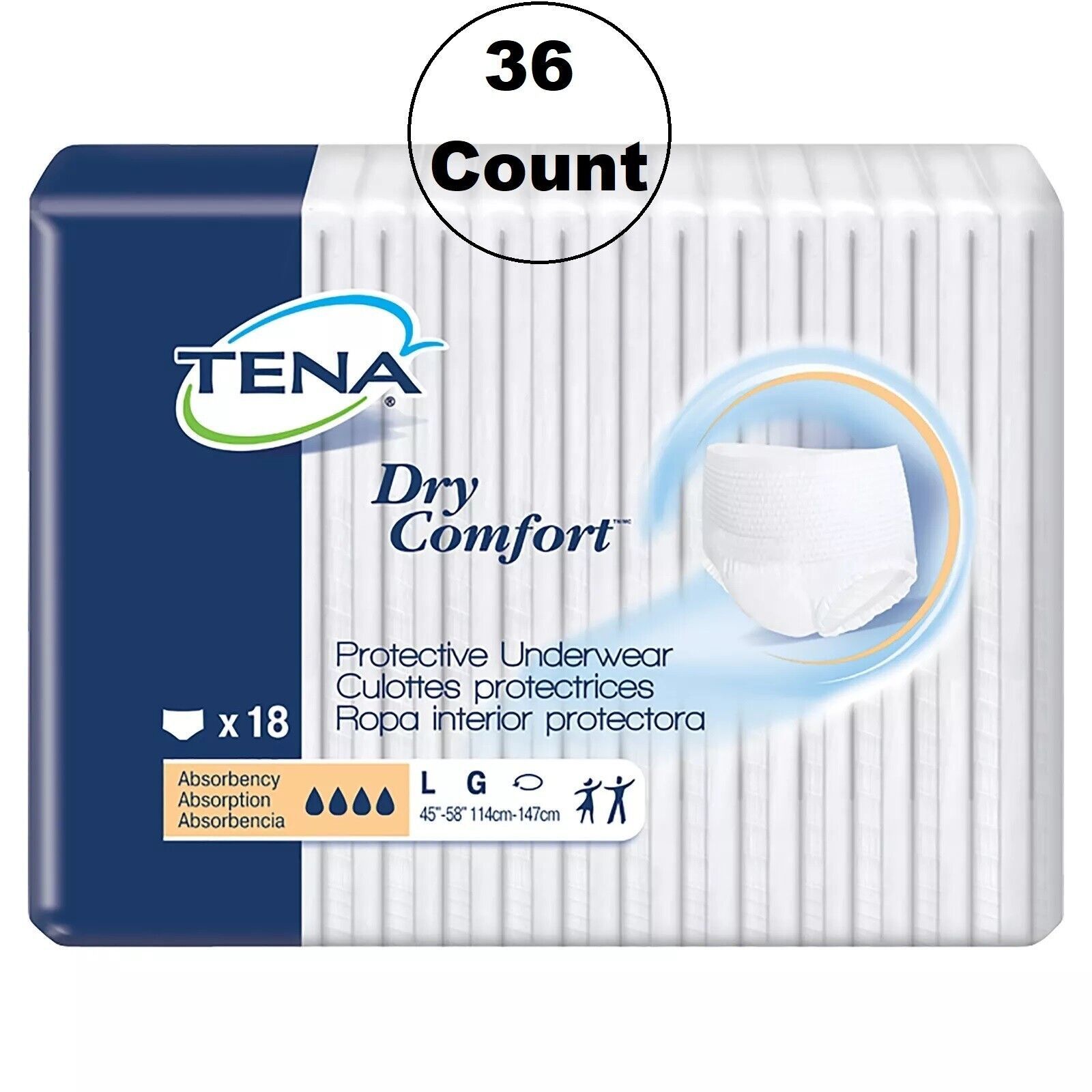 - This listing is for 36 Count TENA Dry Comfort Disposable Underwear Unisex Adult Large