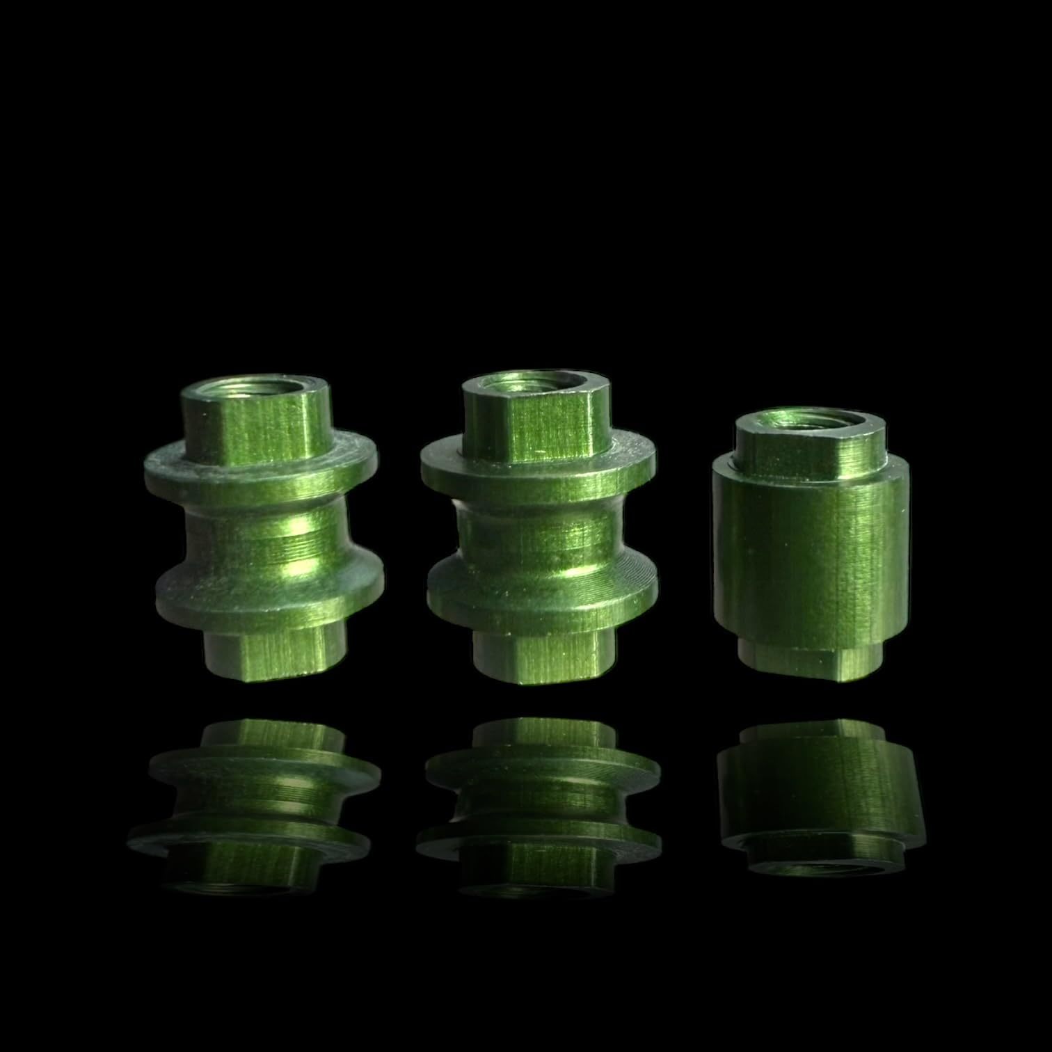 -Fits mini and full-size Bugout -Anodized in green anodizing -Billet aluminum -Cnc machined -3-pack -MADE IN USA The product is a 3-Pack of Barrel Bushings in Loden Green, they are designed specifically for compatibility with the Benchmade Bugout knives. These bushings are precision-engineered and made from billet aluminum, offering enhanced durability and resistance to wear. The anodized finish in green adds a distinctive and stylish accent to your knife. Crafted for a perfect fit, these bushings ensure smooth operation and improved stability of the knife. Ideal for knife enthusiasts looking to customize their Benchmade Bugout with both a unique color and a long-lasting material. Since this isn't a hard coat anodized, the color may wear with everyday usage. MADE IN USA *colors may vary due to different lighting*