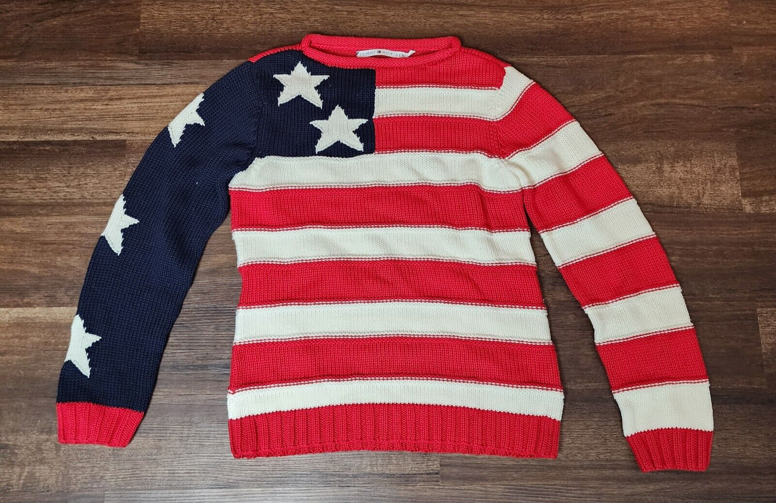 Tommy Hilfiger American Flag Stars & Stripes Cotton Jumper Sweater Hand Knit M