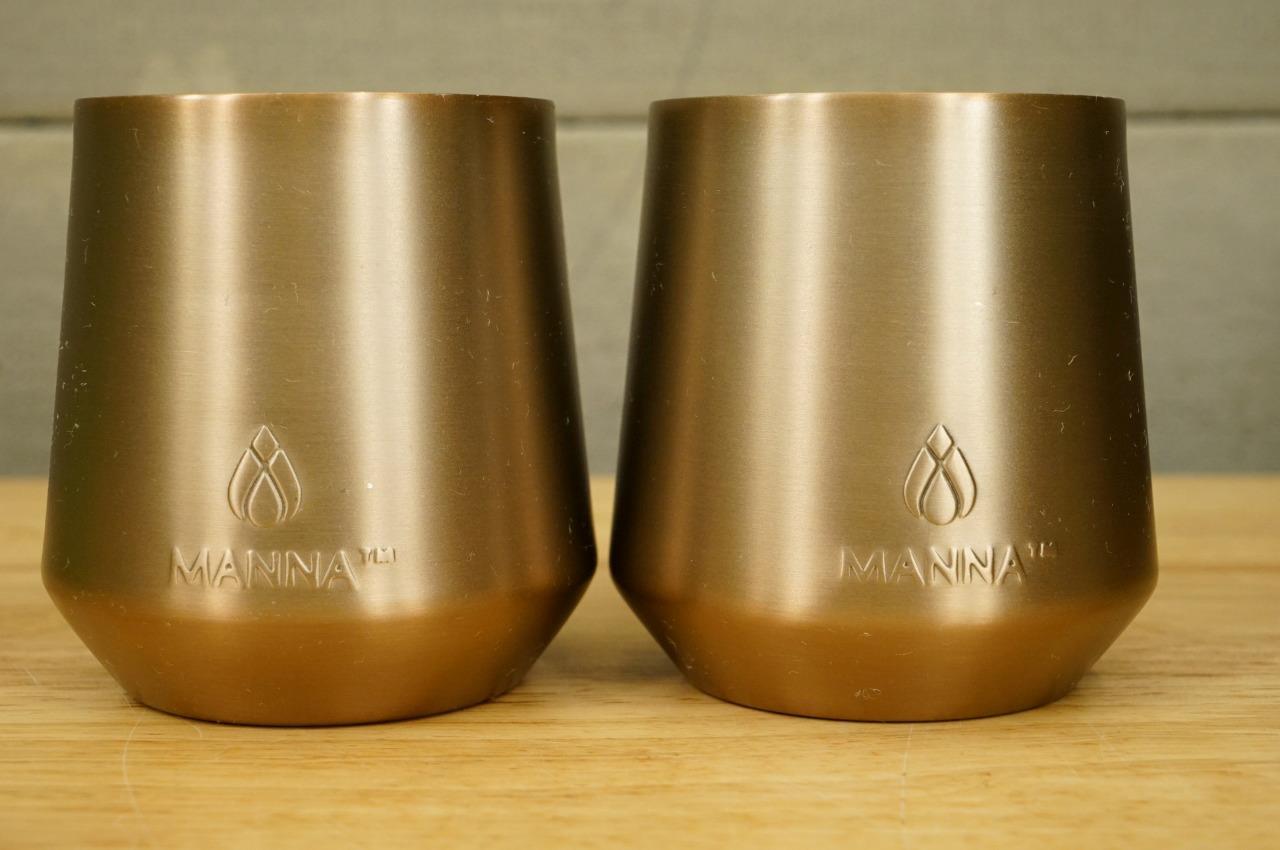 2PC Lot MANNA Insulated Bronze Color Stemless Metal Tumbler Cups 4" Tall. No smoke or pet odors.