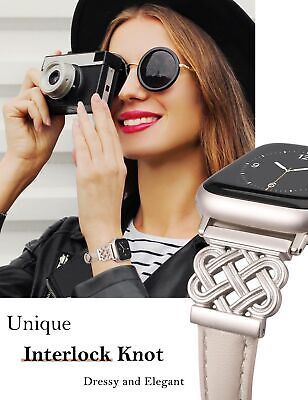 Color: Starlight/StarlightFeatures: 2024 Designer Interlock Buckle: These slim leather iwatch bands for women feature an elegant, narrow design with a stylish interlock buckle. The Celtic-inspired knot symbolizes luck and eternity, blending classic and modern elements to enhance your taste Premium Material: This dressy compatible with apple watch bands for women features soft, durable genuine leather and rust-resistant stainless steel interlock knot and adjustable clasp; Lightweight, skin-friendly, and comfortable for all-day wear Compatibility and Size: This cute leather band is compatible with Apple Watch All models, including Series 10 (42mm/46mm), Ultra 2/Ultra (49mm), Series 9/8/7 (41mm/45mm), Series SE/6/5/4 (40mm/44mm), and Series 3/2/1 (38mm/42mm); Fits wrists 5.3" to 7.4" Easy to Install: Our fancy strap replacement for apple watch bands easily installs on and off. Double fasteners keep the band end tucked neatly, and upgraded stainless steel connectors secure your iwatch firmly, preventing it from falling off Great Gift Choice: TOYOUTHS dressy genuine leather compatible with apple watch ultra 2 band is a stylish and elegant gift for yourself or loved ones. Perfect for Women's Day, Mother's Day, Thanksgiving, Valentine's Day, Christmas, and New Year Package Dimensions: 7.3 x 4.2 x 0.3 inches