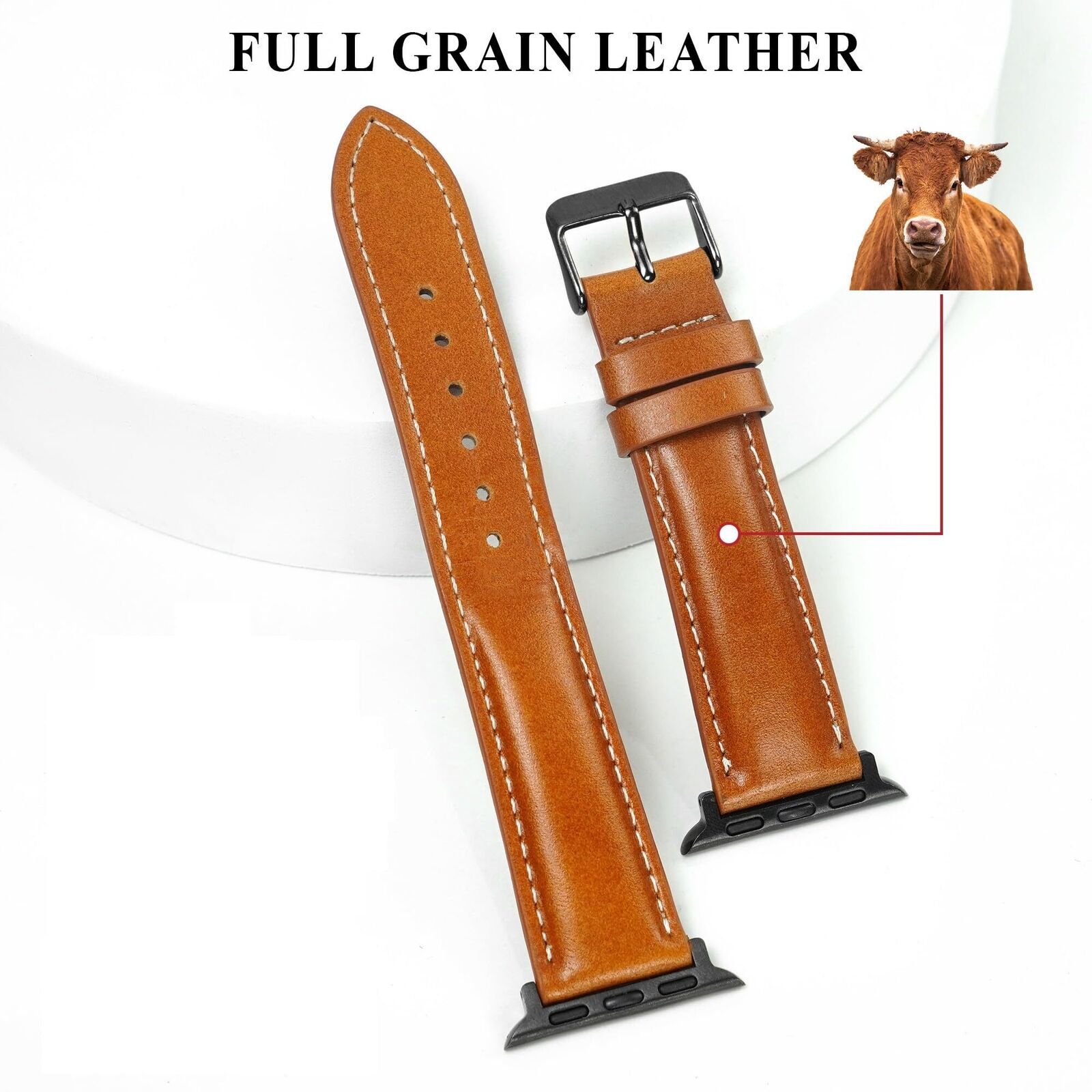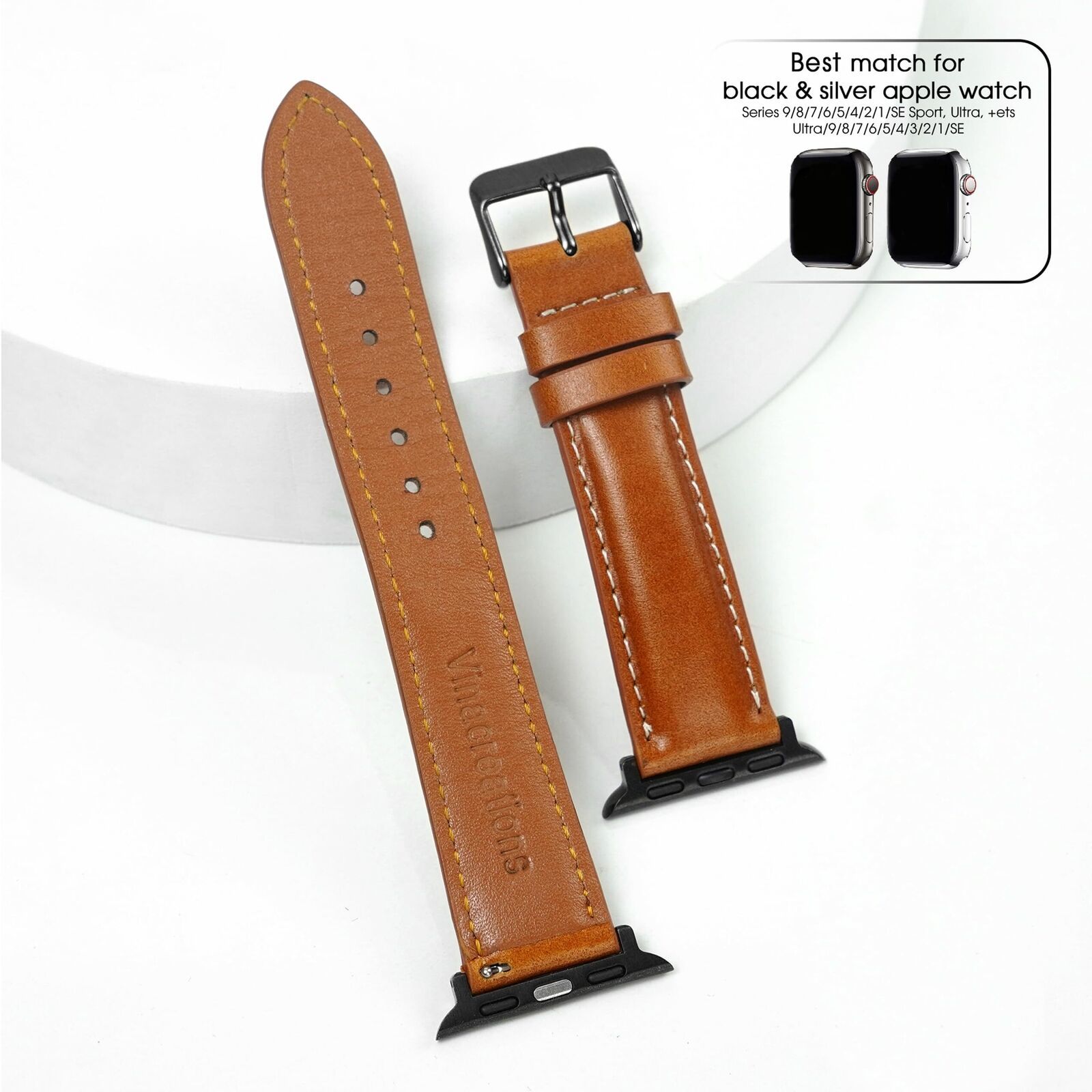 Color: Light Orange CowhideFeatures: ? High Quality: The VinaCreations vinatge leather strap is crafted from full-grain cowhide leather, renowned for its strength and ability to develop a beautiful patina over time. This patina not only adds character to each strap but also tells the unique story of its wearer ? Package Included: 1 tan leather band for apple watch; 1 Black 1 Transparent Screen Protector Case for apple watch; 2 Stainless steel Connectors/Adapter, 1 Black Stainless steel Buckle ? Suitable Model: Compatible with Apple Watch/ Iwatch 49mm, including Series 8/7/Ultra. The wrist strap is adjustable to fit a wrist size of 6.7'' - 8" (170mm-205mm), You can achieve the perfect fit for your small or large wrist. ? Handcrafted Excellence: Meticulously handmade by skilled artisans, featuring precision stitching and a soft leather interior for ultimate comfort. ? Custom: available in classic colors like Black, Brown, and Tan,.... perfect for both formal and casual looks. We are the leather maker, if you are looking for custom / customized or personalization watch please contact us with detail, We will make as your requirements Package Dimensions: 4.7 x 0.8 x 0.4 inches