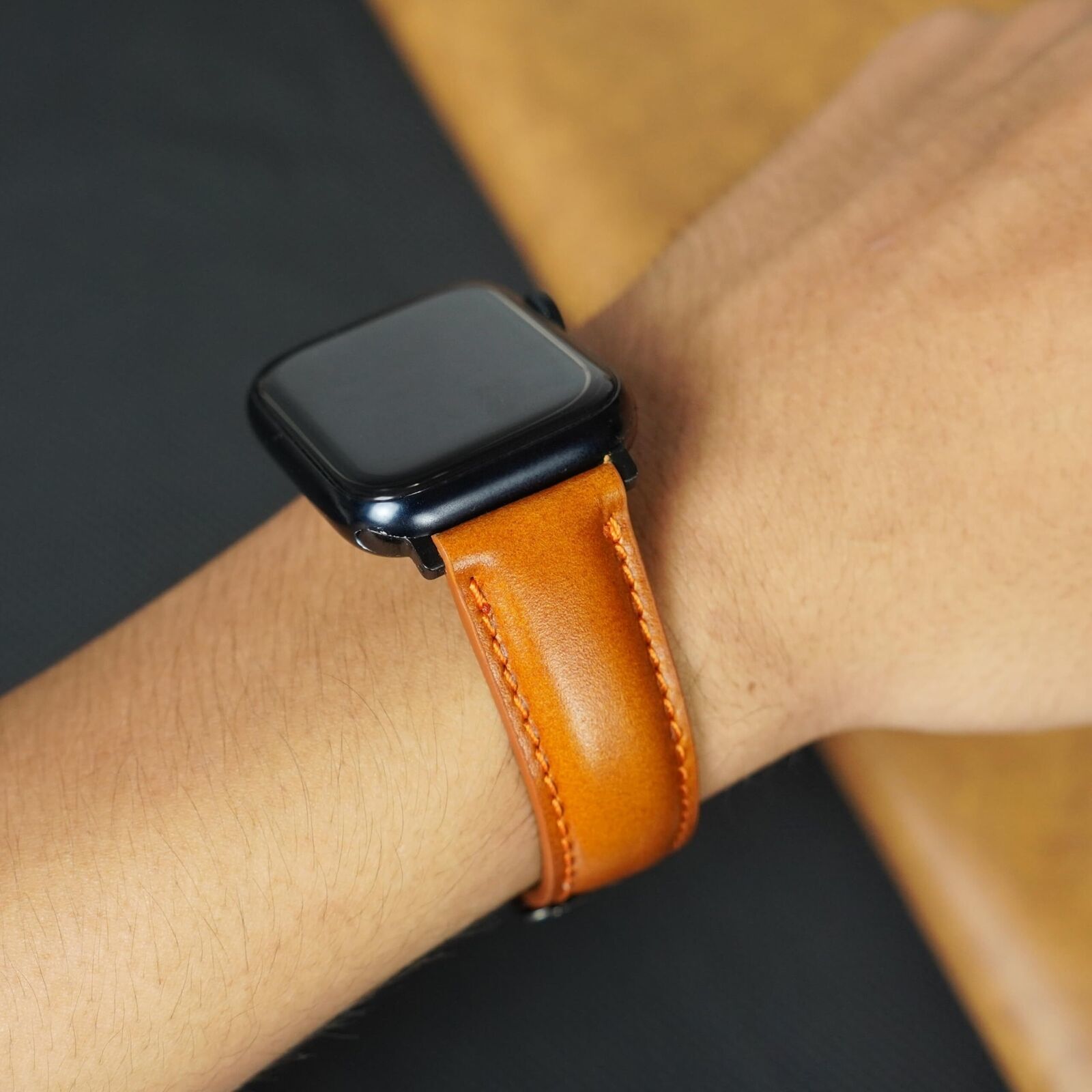 Light Orange Full Grain Leather Band Compatible for Apple Watch Ultra 49mm Scree