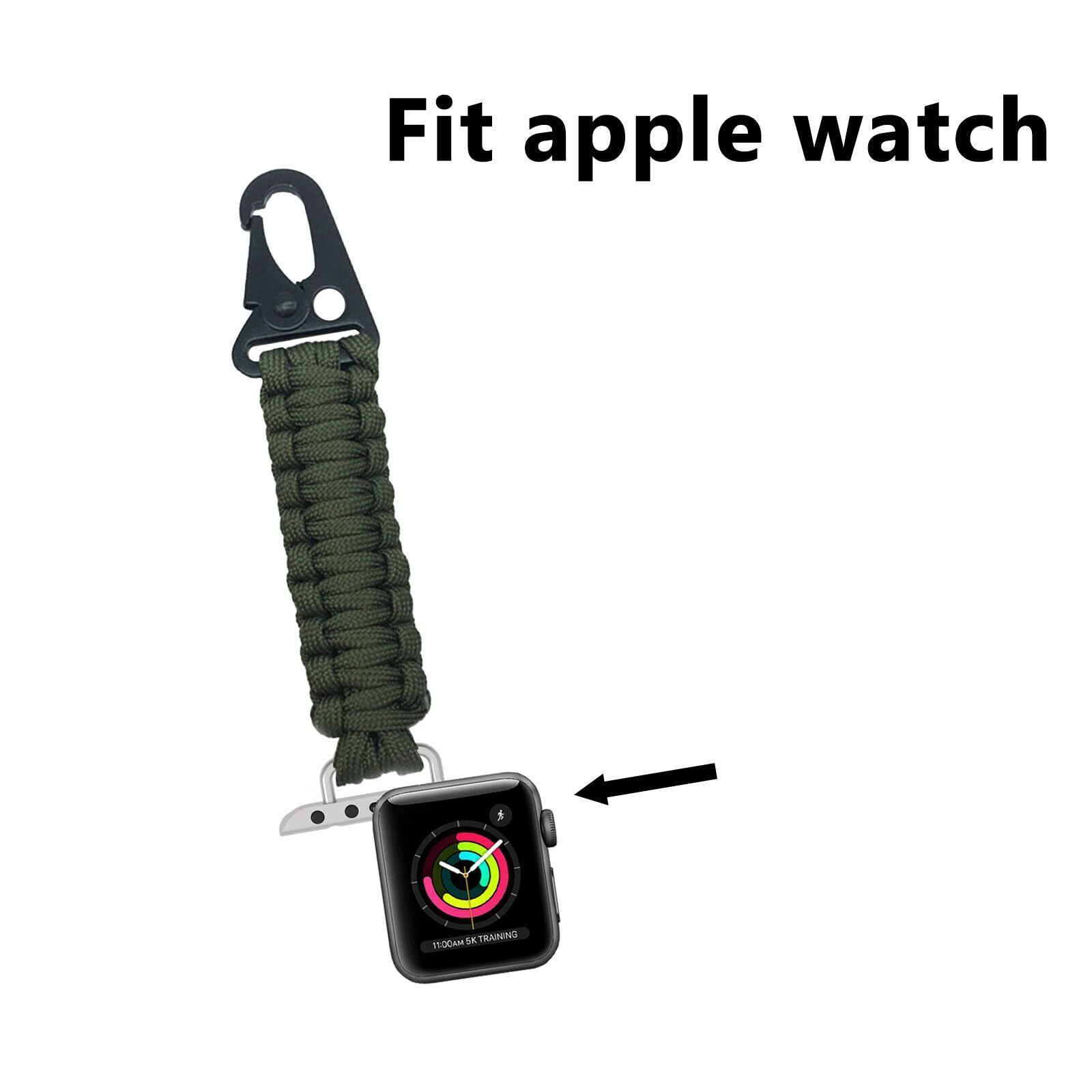 Color: 1black1greenFeatures: Perfect Design: Compatible with Apple Watch dial 38 40 41 42 44 45 49mm watch, the paracord is made of seven core, and can be disassembled as a rope in emergency situations, such as tourniquets, leg straps, and other strapping,stabilize a tent to build a shelter, create hunter traps, hiking rope and so on. Widely Used: Widely used in leisure travel,camping, exploration, fishing, rafting, etc., not only can be used as a fashion accessory,but also has the practical functions required for outdoor exploration.making it an ideal gift for a relative or friend, and ideal for preparing your loved one for their next outdoor activity. Quality Material:Paracord backpack strap is made of stainless steel hook and 7 strands of parachute rope,the woven rope is solid and not easy to break or tear,military grade paracord material, nylon paracord + stainless steel metal connector, weight about 22 grams, small size, light weight, durable and lightweight, easy to carry. Easy to Use: This Paracord Watch Band keychain makes it easy to hang things on backpacks, zippers, belt loops, and is ideal for people whose wrists are not convenient for wearing a watch. Package Includes:You will get paracord keychains with olecranon buckle chain hooks at one end and an apple watch connector at other end. Customer Guarantee:No reason to return or refund.please do not hesitate to contact us if you have any questions about our product.7 x 24 hours after-sales support. Package Dimensions: 6.6 x 2.1 x 0.6 inches