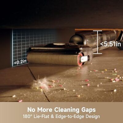 ?Powerful Vacuum and Mop in One?With the impressive 18,000 Pa suction power, dreame H12 Pro FlexReach wet dry vacuum cleaner can vacuum and mop the floor at the same time, easily removing wet and dry messes. It's a time-saver and a big helper for floor cleaning, which can sparkle your home floor after every use. ?0 Tangle, Born for Hair Cleaning?With its TangleCut resilient scraper, H12 Pro FlexReach Vacuum Mop effectively captures and cuts hair tangles during mopping, keeping clogs at bay and minimizing the need for manual cleaning. ? 180 Lie-Flat Reach?Conquer tight spaces effortlessly with the vacuum?s 180 Lie-Flat Reach design, fitting into gaps as narrow as 5.51in. The used water tank securely captures dirty water, protecting the main motor and ensuring powerful suction even in a flat position. ?All-Round Fresh Water Cleaning?Featuring the self-rinsing brush that refreshes with clean water every pass, H12 Pro FlexReach always cleans floor with fresh water. Say goodbye to the hassle of frequent water changes of your traditional mops. This floor cleaner machine also can deliver a thorough clean along baseboards and tight corners through its edge-to-edge cleaning on both sides. ?194? High Temp Self-Wash Self-Dry?Following a 194F hot wash self-cleaning, the brush is dried with hot air at 194F for 5 minutes to eliminate excess water, helping prevent odors and leaving the brush fresh and fluffy. ?50Mins of Long-Lasting Runtime?You can say goodbye to runtime worries and enjoy up to 50 minutes of uninterrupted performance to keep your home spotless.