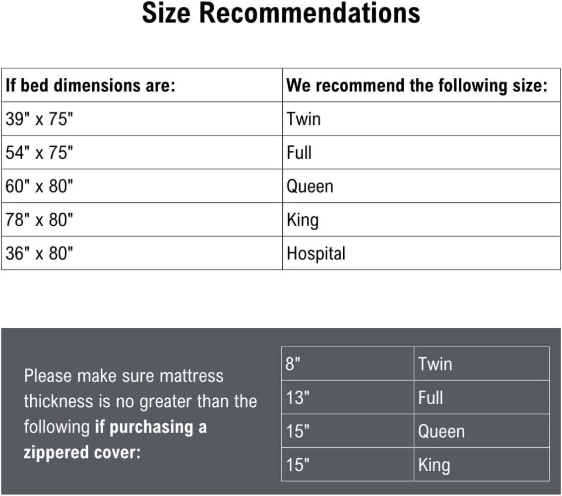 Color: WhiteFeatures: MATTRESS PROTECTOR AND MATTRESS PAD FOR BEDWETTING protects the mattress and extends its life with a waterproof pad that easily encases the entire mattress with a zipper closure. The deep pockets stop it from moving and sliding when in use WATERPROOF MATTRESS COVER is perfect for protecting against pet dander, incontinence, accidental spills and for potty training MATTRESS PAD keeps foreign substances away WATERPROOF BED PAD IS CONSTRUCTED OF DURABLE AND DEPENDABLE MATERIAL that is quiet and will not crack, peel or discolor over time Details: This durable and dependable best-selling mattress protector and cover helps not only protect your mattress but extend the life of it. It?s very easy to clean and maintain and it is machine washable. This mattress protector helps protect against foreign substances. It will not make noise or move around when in place. The plastic does not crack, peel, discolor or harden overt time. HealthSmart?s mission is to make achieving and maintaining a healthy, happy and independent lifestyle as easy as possible. With over 65 years of experience, we know what it takes to stay on the leading edge of product innovation and design. We create and distribute healthcare products that not only look great, but help you feel great, too. When you feel good inside and out, you?re ready to take on the worPackage Dimensions: 10.9 x 8.6 x 0.9 inches