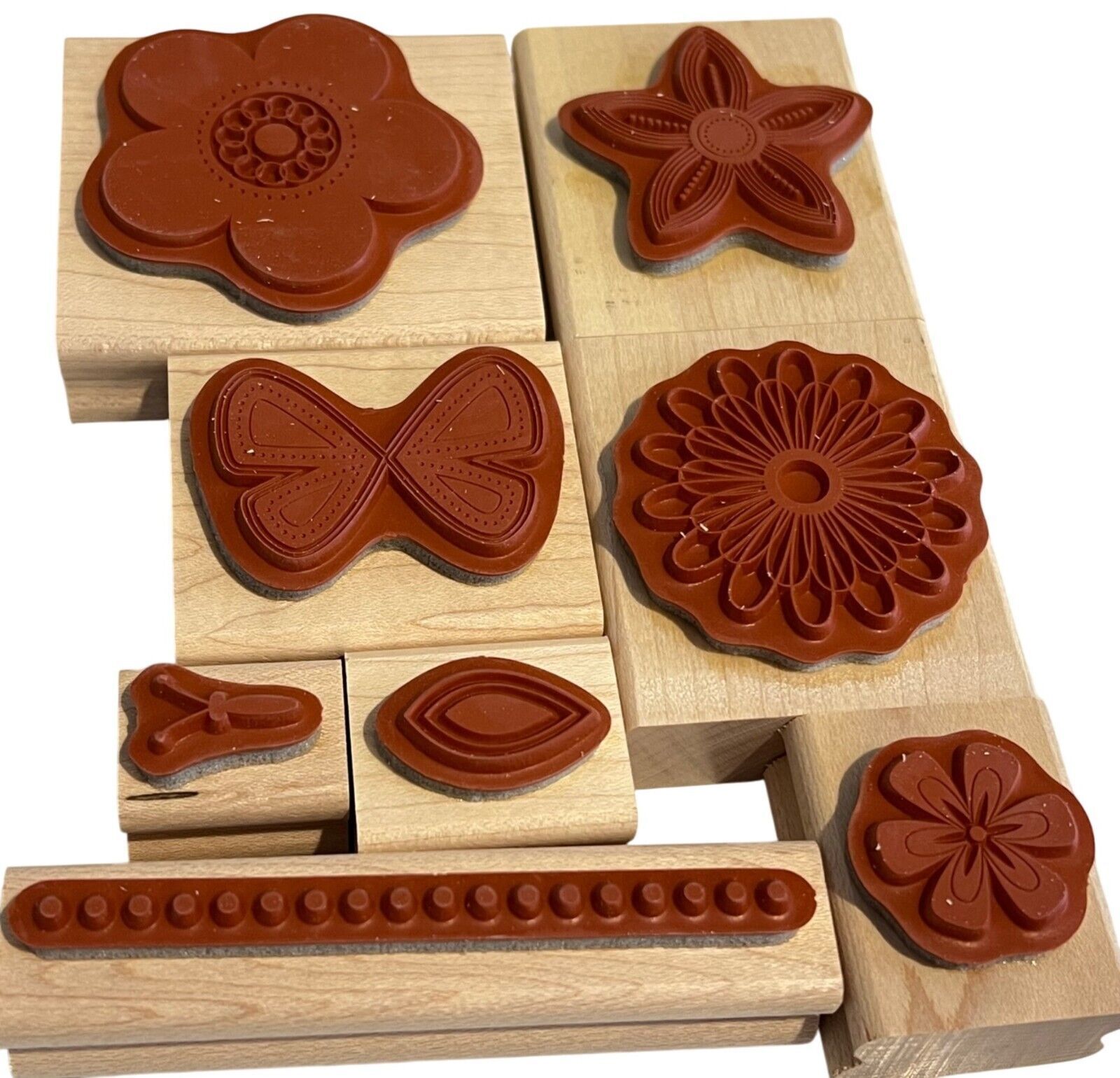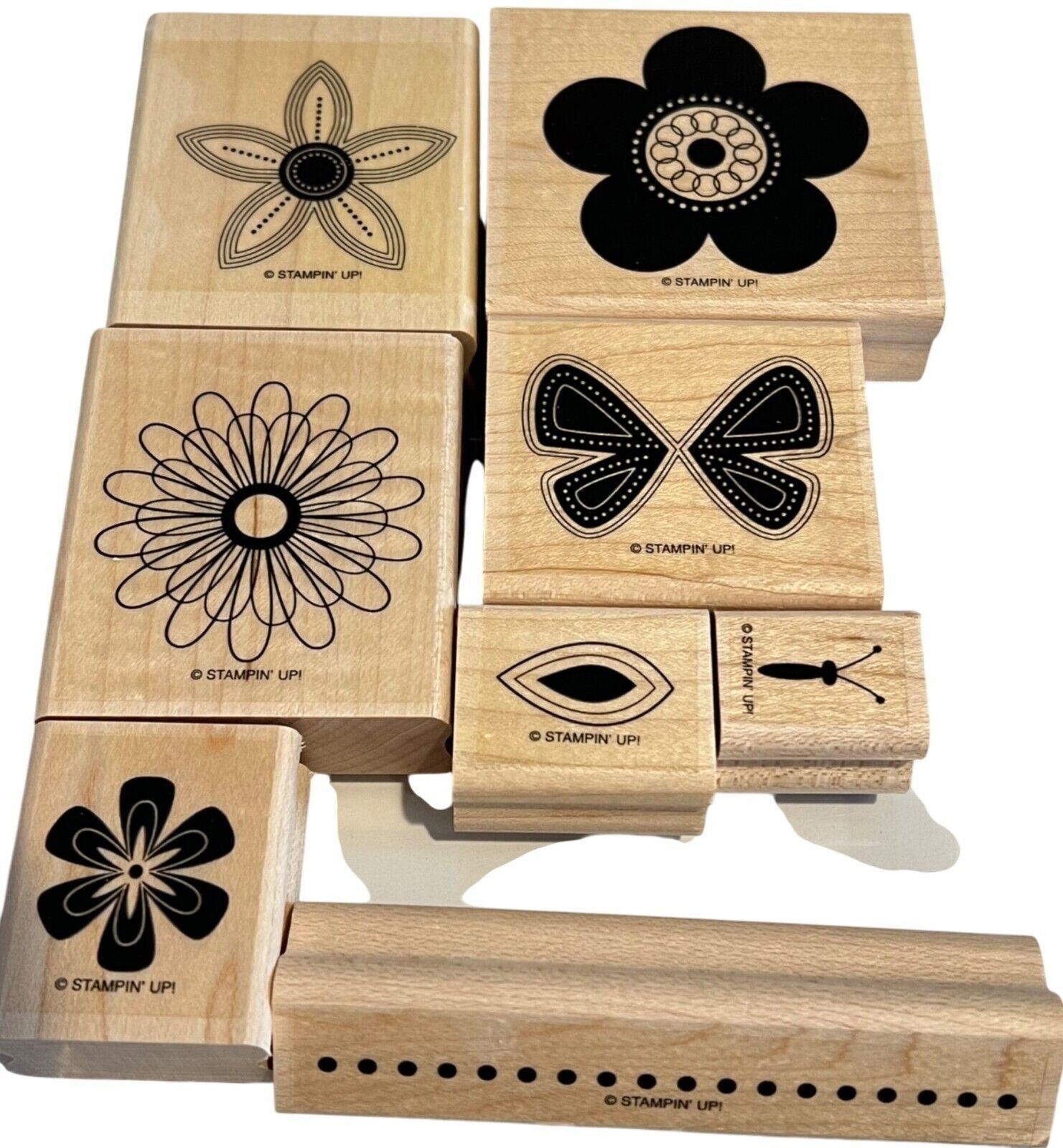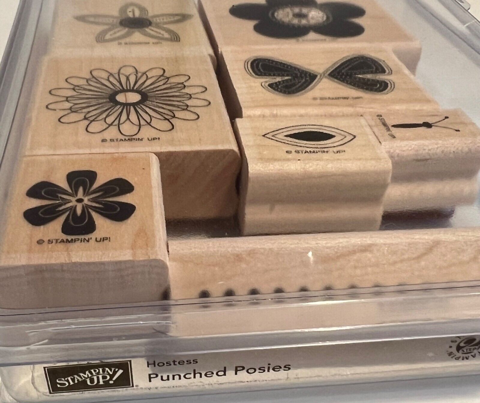 Stampin Up! Hostess Punched Posies Wood-Mounted Rubber Stamps Set Of 8 Flowers &